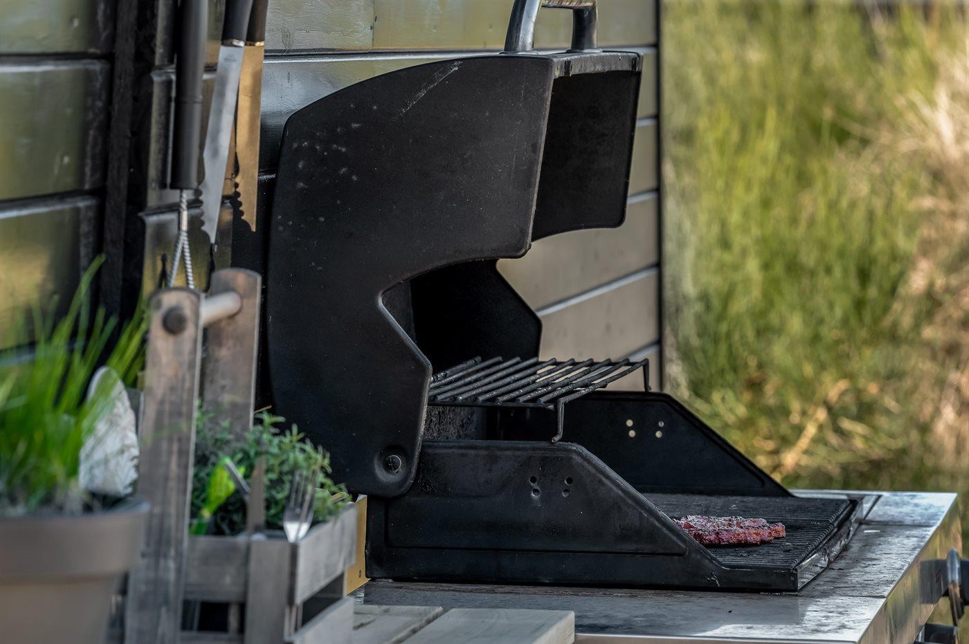 Udendørs kan du slappe af på det lækre åbne terrasseareal, lave mad på grillen, lave snobrød ved bålstedet – eller tage en pause i standvandsspaen, som har plads til fire personer (åben uge 14 til 44).