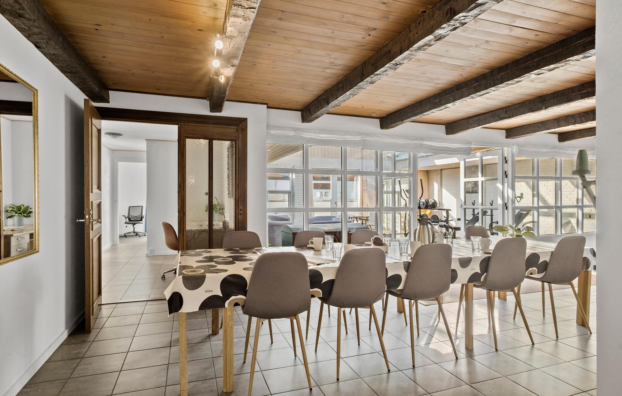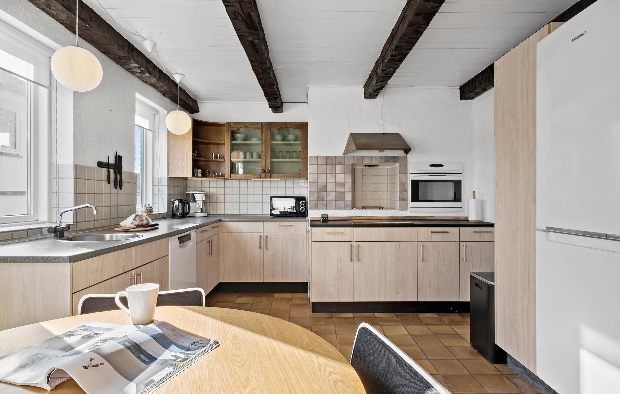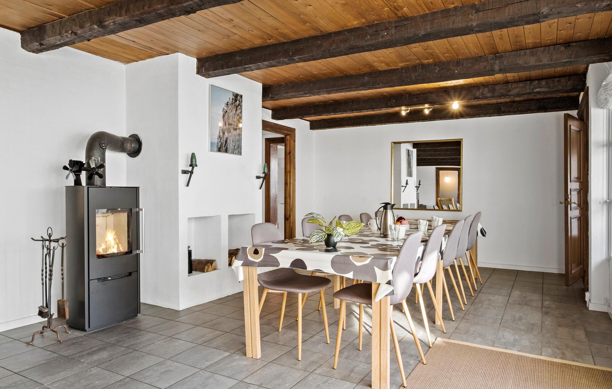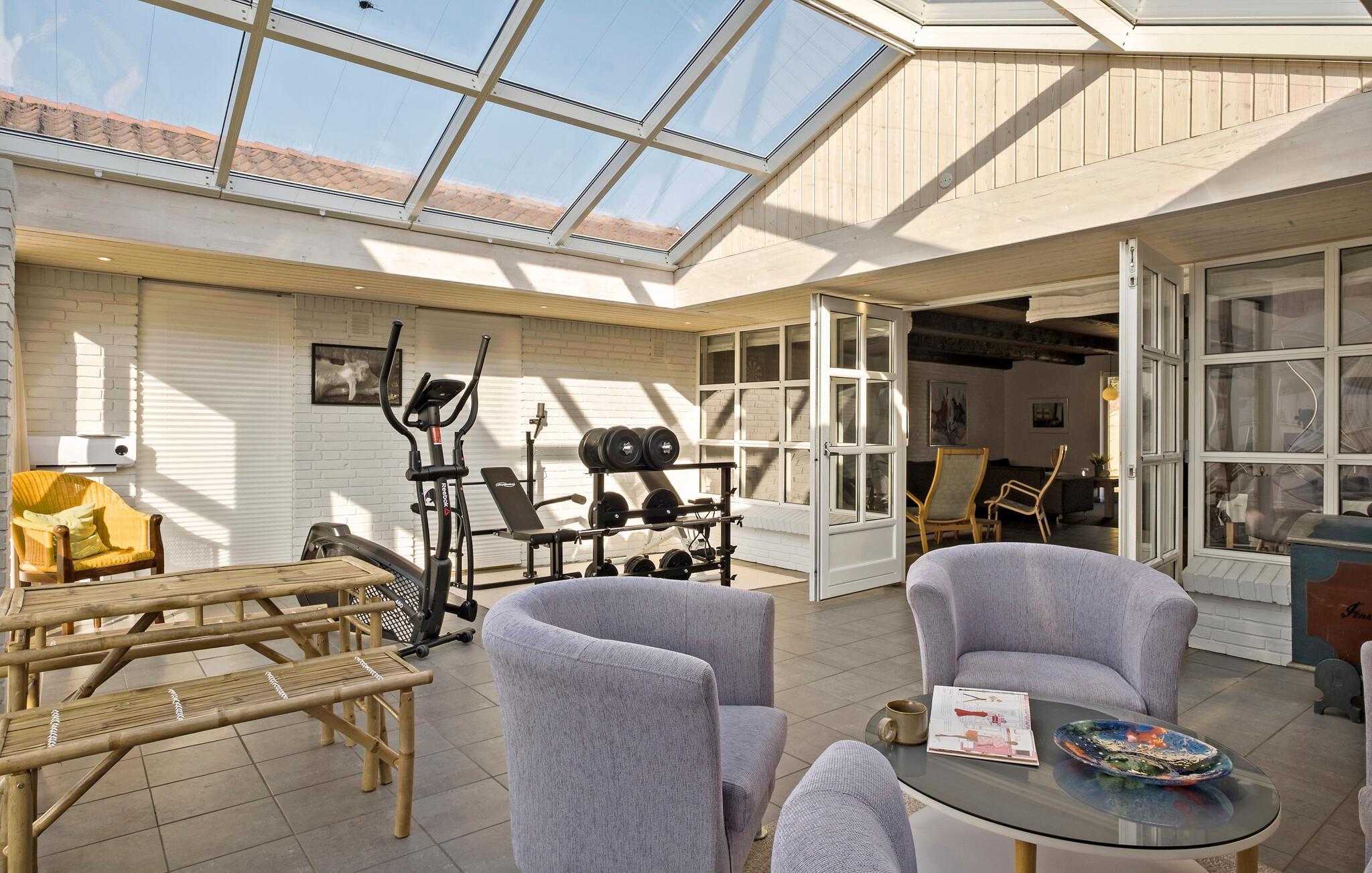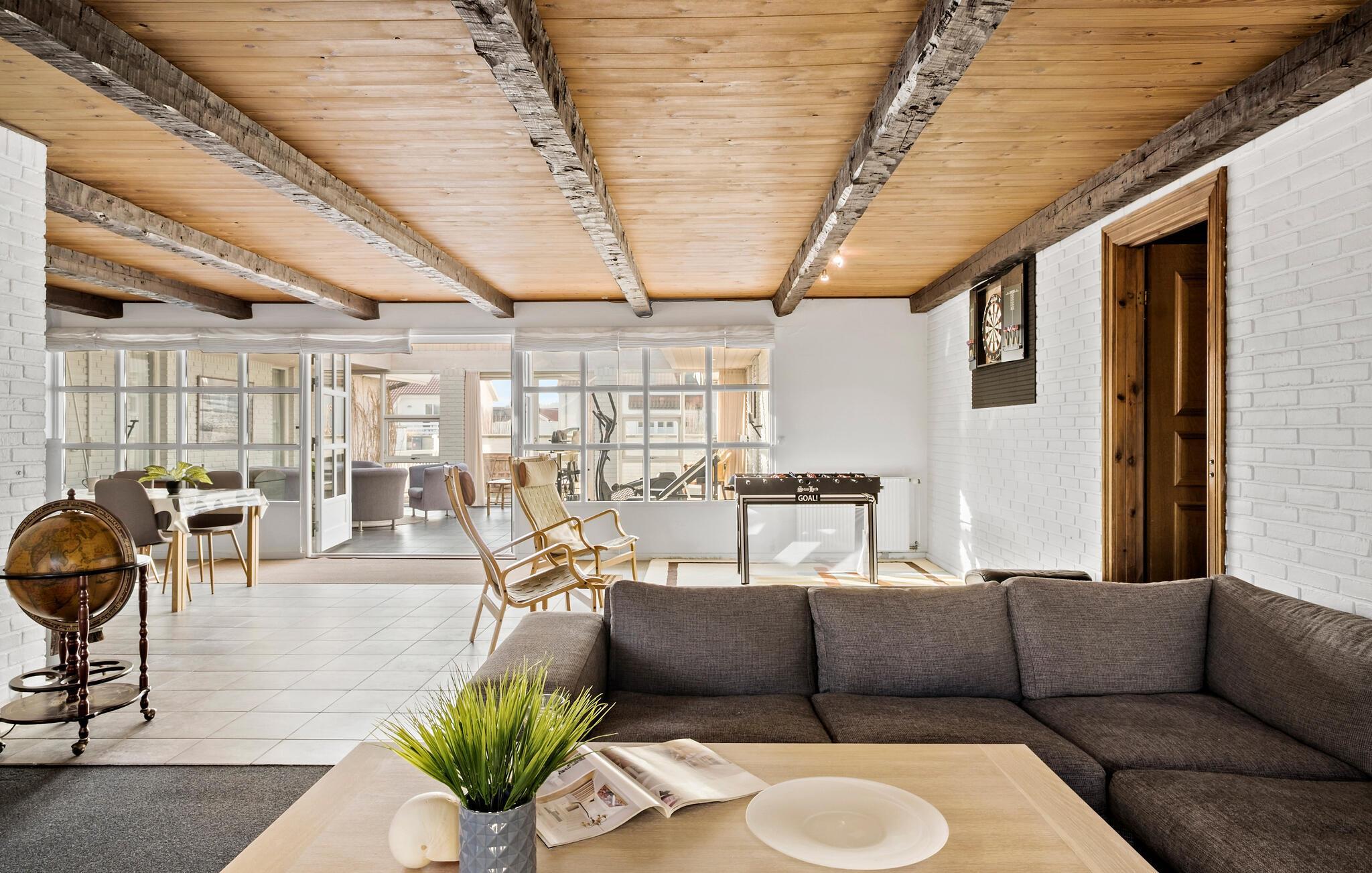 Der er lagt op til nogle herlige dage i dette indbydende feriehus midt i feriehøjborgen Blokhus. Her kan I se frem til en ferie i naturskønne rammer tæt på det hyggelige byliv i Blokhus og de andre byer på den nordjyske vestkyst. I det indbydende hus er der god plads og mulighed for at sætte hverdagen på pause. Der er plads til to familier i det lyse interiør med flotte nostalgiske detaljer som dørene og det stemningsfulde træloft. Find jer godt til rette i de komfortable sofaer, nyd dagens måltider sammen ved det lange spisebord og slap af om aftenen, mens ilden knitrer i brændeovnen. I udestuen kan I sætte jer og nyde solen eller få lidt sved på panden, for her står der også fitnessudstyr.
