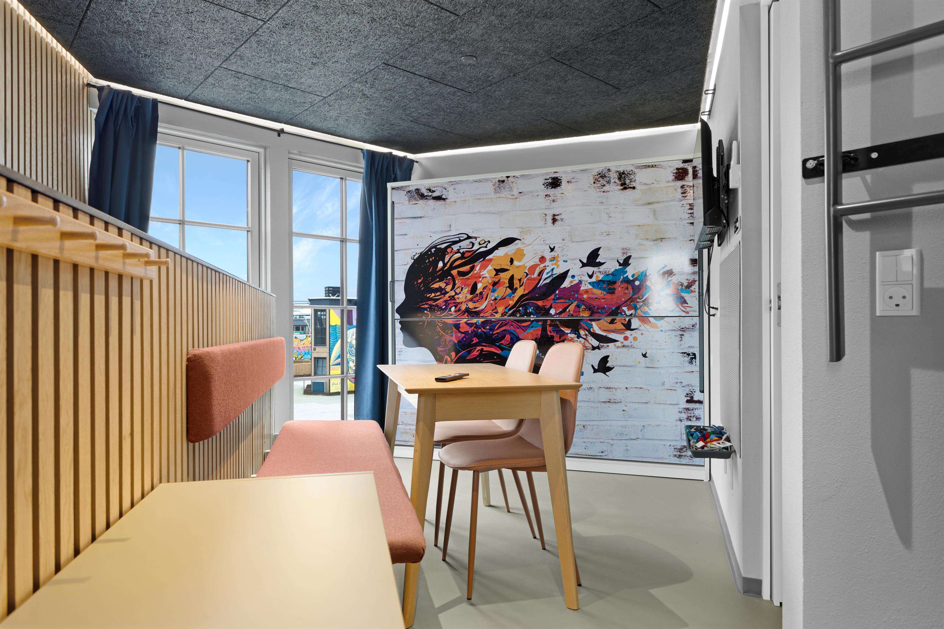 Sommerhusene i Fun Art har plads til op til 6 personer med fire køjesenge og en dobbeltseng på første sal. Hvis I er færre, kan køjesengene foldes ind, så der skabes mere plads i sommerhuset. Indretningen er kompakt og funktionel, så I har alt, hvad I behøver for en dejlig ferie. I stueetagen er der et køkken/alrum, et badeværelse og en terrasse, så I kan slappe af og nyde parken lige uden for døren. Der er også opvaskemaskine, vaskemaskine, tørretumbler og grill samt ladestandere til elbiler. Alle sommerhusene er røgfri.