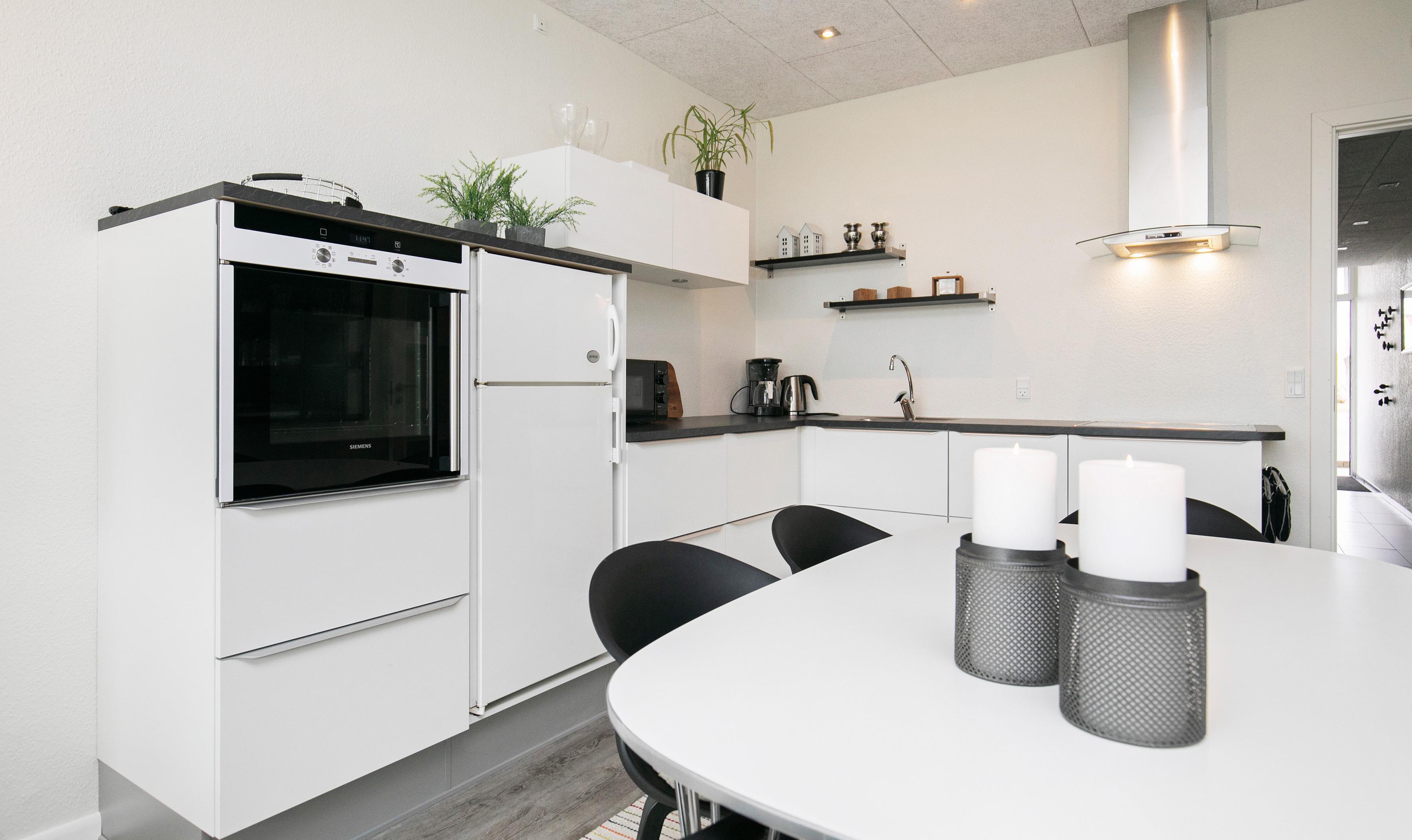 Køkkenafd.: El-komfur, ovn, køleskab m/frostboks, emhætte, kaffemaskine, opvaskemask.
