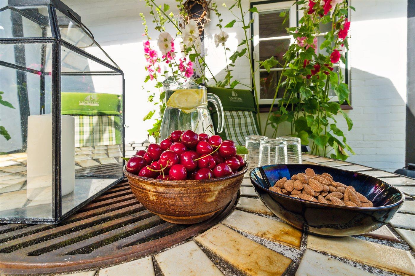 Husets have er lukket af ud mod vejen, og du får naturen på nærmeste hold. Der er plads til både leg og hygge i den store solrige og sydvendte have. Alt ånder fred og ro, og grunden er indrammet af marker og åbne vidder. Leg i den tilhørende lille naturskov er på eget ansvar. På den anden side af vejen finder du oldtidsattraktionen “Jættedal”, mens det hyggelige havnemiljø ved Boderne både byder på shopping, is og hvid sandstrand.
