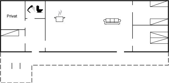 Køkkenet er udstyret med 1 køleskab. Der er 4 induktionskogeplader, varmluftovn, mikrobølgeovn samt opvaskemaskine.
