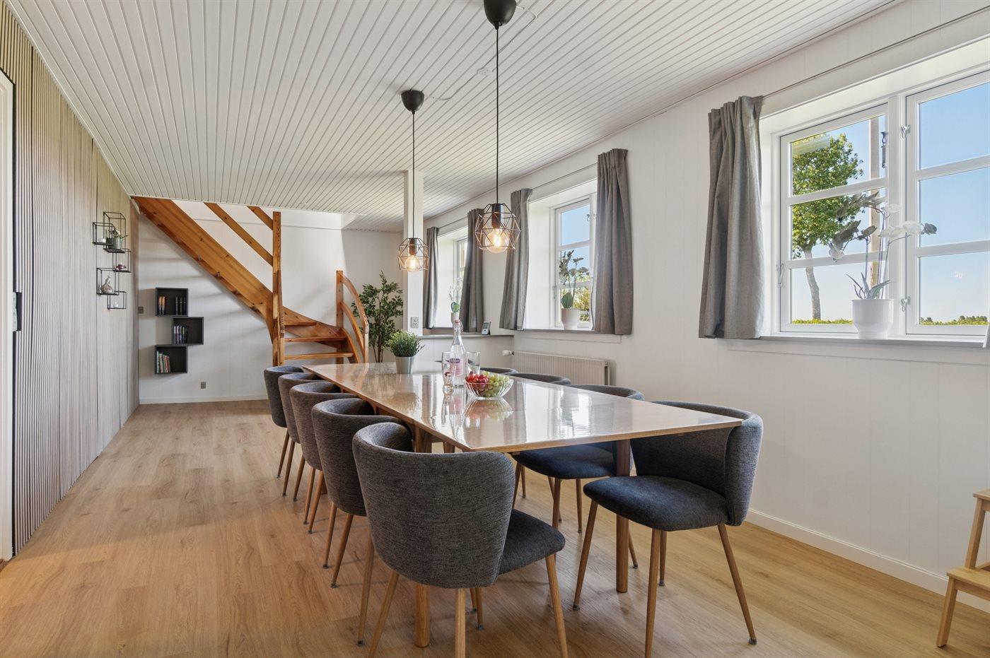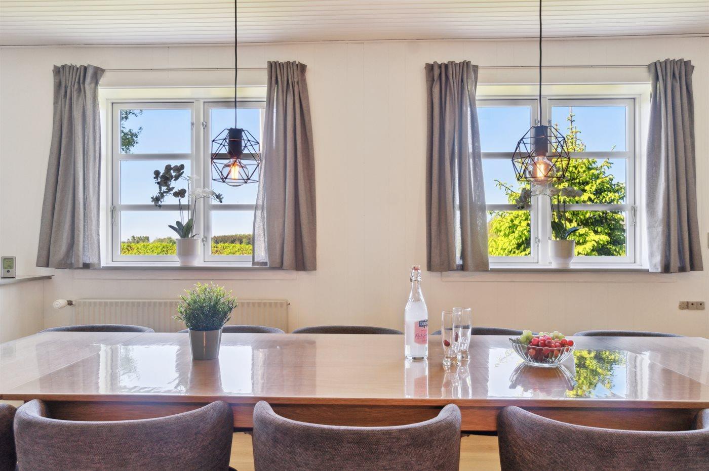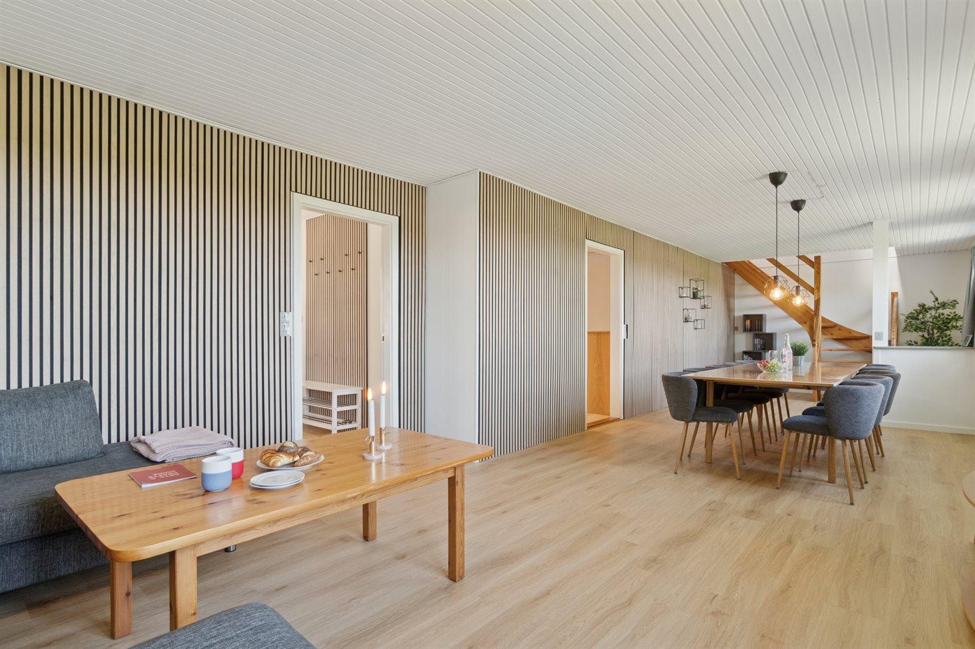 Huset er helårsisoleret og omgivet af en stor afskærmet havegrund. Der er god plads til alle, så to familier eller flere vennepar kan nyde huset og omgivelserne sammen. I den meget store stue med hvide vægge og flotte paneler er der plads til alle ved det lange bord, når måltiderne skal nydes. Der er også mulighed for at nyde timer i udestuen - her er der også hyggeligt og rart.