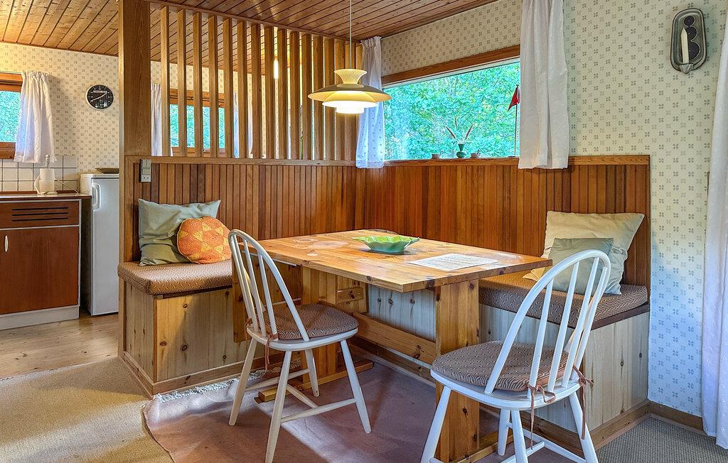 Oplev Bornholms rolige side i dette hyggelige træhus, der er omgivet af tætte træer. Inde i huset mærker I straks den autentiske stemning. Indretningen er enkel, men varm og indbydende – med masser af træ, bløde tekstiler og personlige detaljer. Sæt jer godt til rette i stuen, læs en bog, eller se fjernsyn, mens vinden suser i trækronerne udenfor. Tilbered fælles måltider i det praktiske køkken, og nyd dem ved bordet i den hyggelige spisekrog.