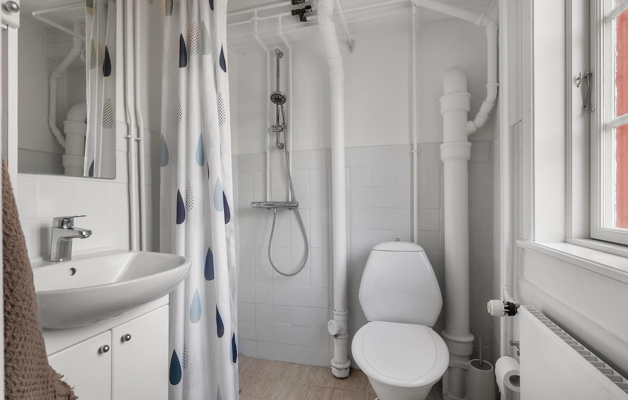 Badeværelse (nr. 1) - WC. Varmt og koldt vand. Bruser