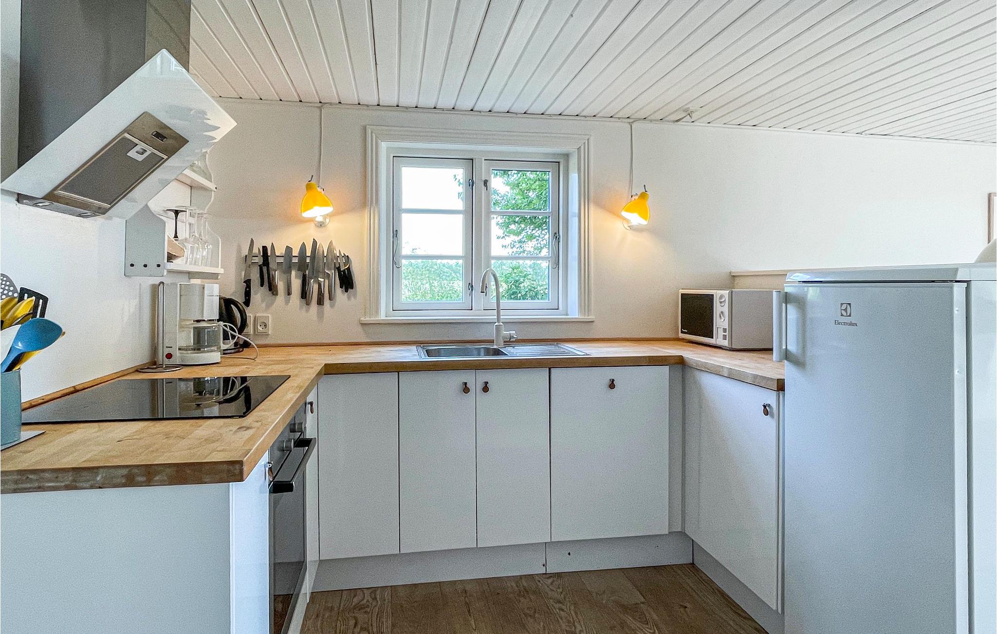 Velkommen til dette lille ferieparadis med et dejligt, komfortabelt møbleret udendørsområde, hvor den smukke natur og de flotte solnedgange kan nydes. Sommerhuset er lyst og hyggelig indrettet med en dejlig opholdsstue med TV/DVD/Apple-TV, radio/CD og udgang til have og en terrasse med havemøbler og en grill til tilberedning af lækre feriemåltider. Derudover har sommerhuset tre gode soveværelser, et badværelse og et åbent køkken med bl.a. opvaskemaskine, mikroovn, keramisk komfur (induktion), emhætte og spiseplads. Der er vaskemaskine og gratis trådløst internet i huset. Udenfor er der en gynge og trampolin til børnenes underholdning (på eget ansvar).