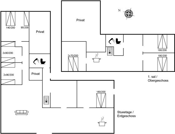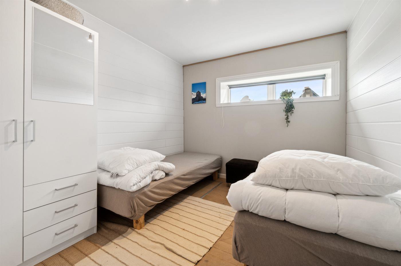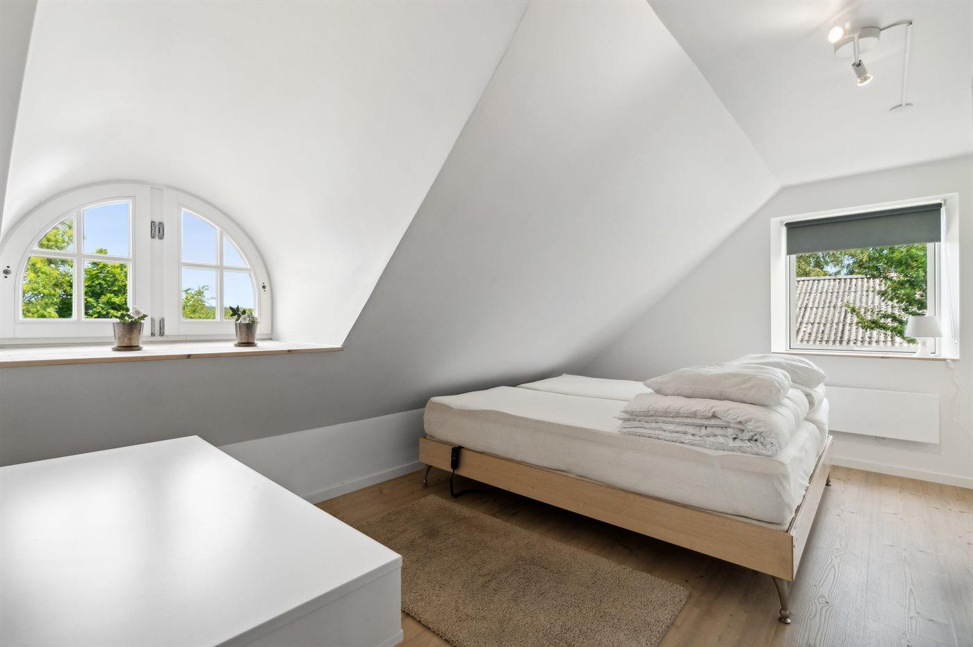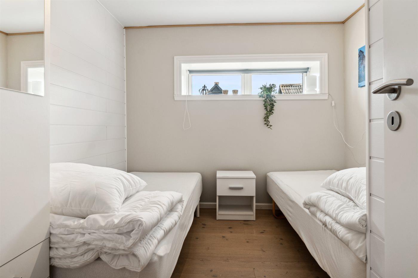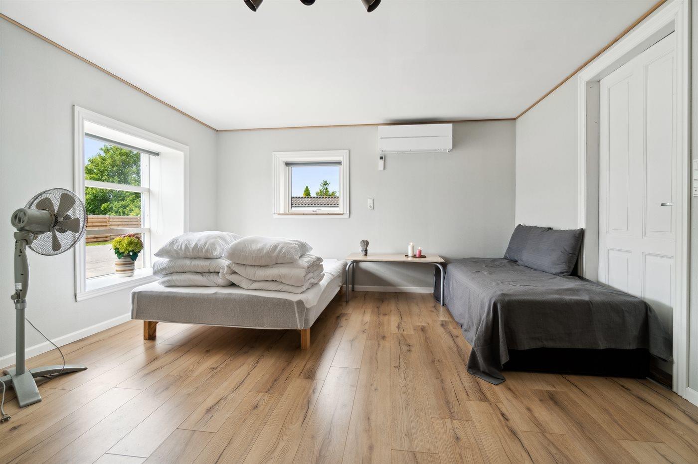 Der er i alt 7 soveværelser. Sovepladserne fordeler sig på: 12 sovepladser i dobbeltsenge.2 sovepladser i elevationssenge. Derudover er der 1 stk. barneseng.