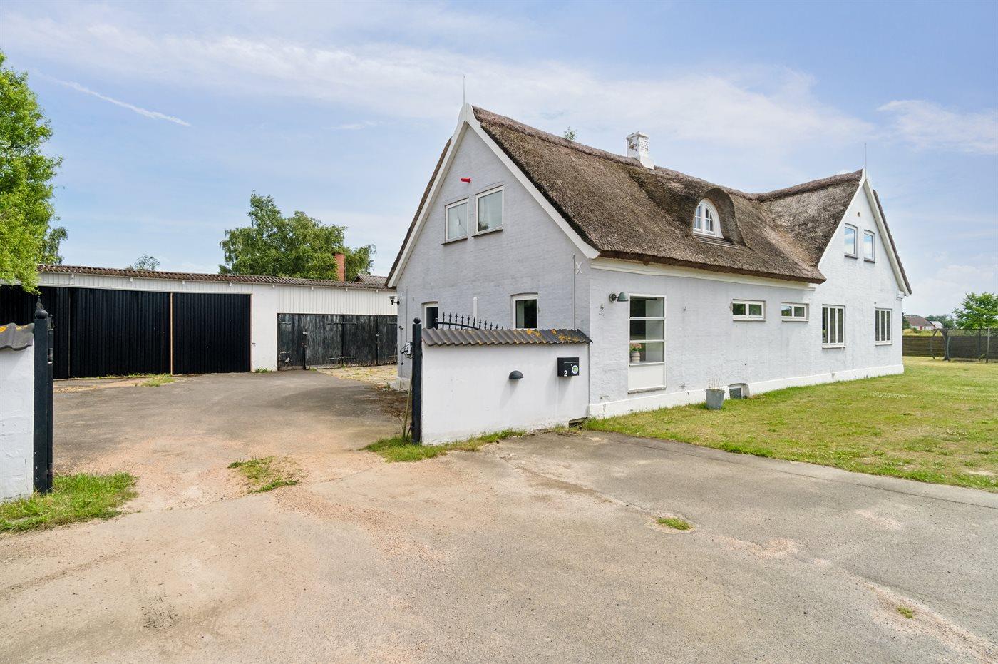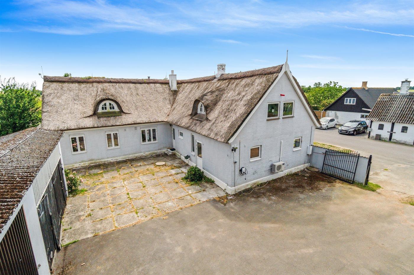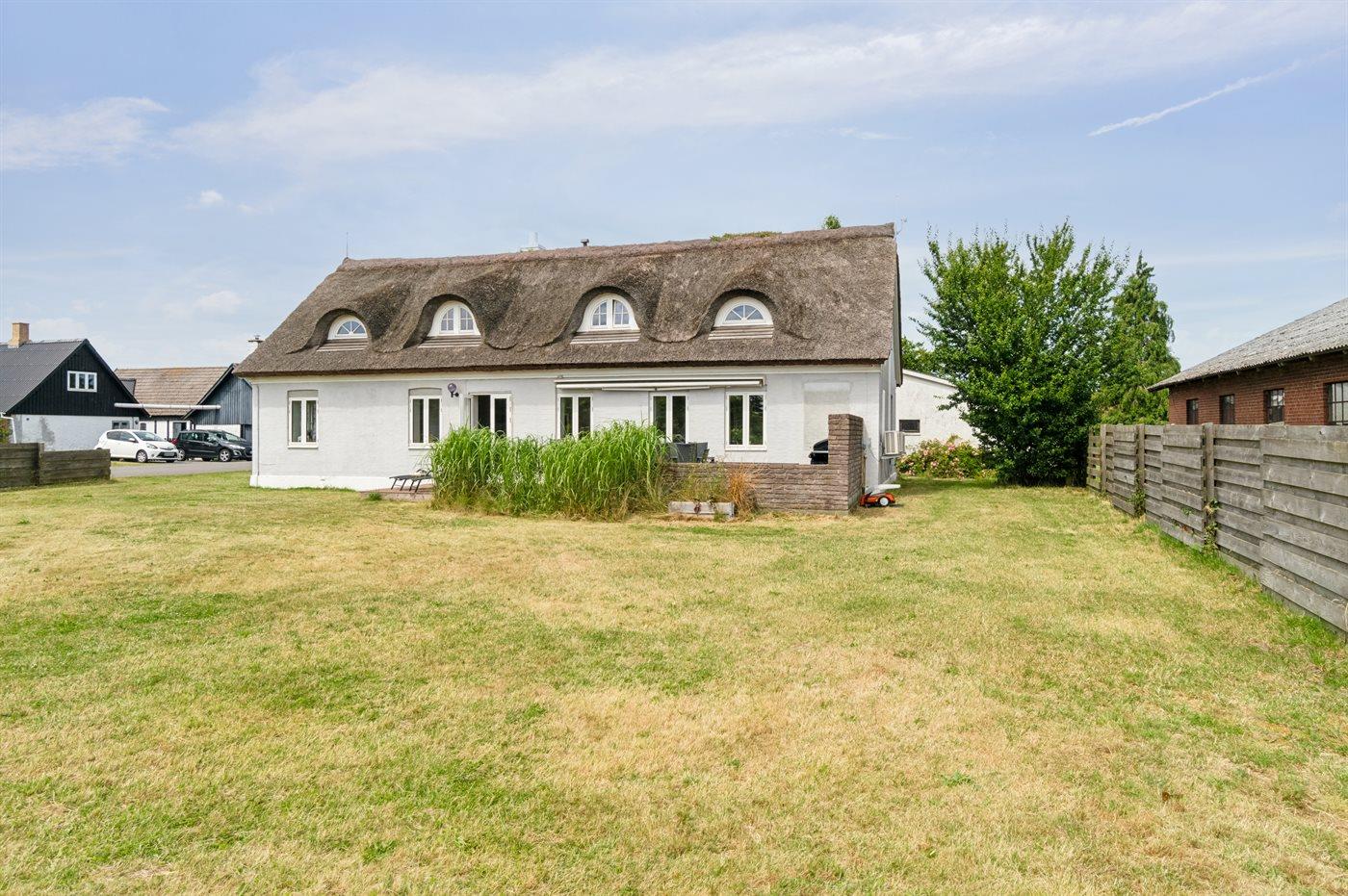 Charmerende stråtækt hus nær strand og skov
