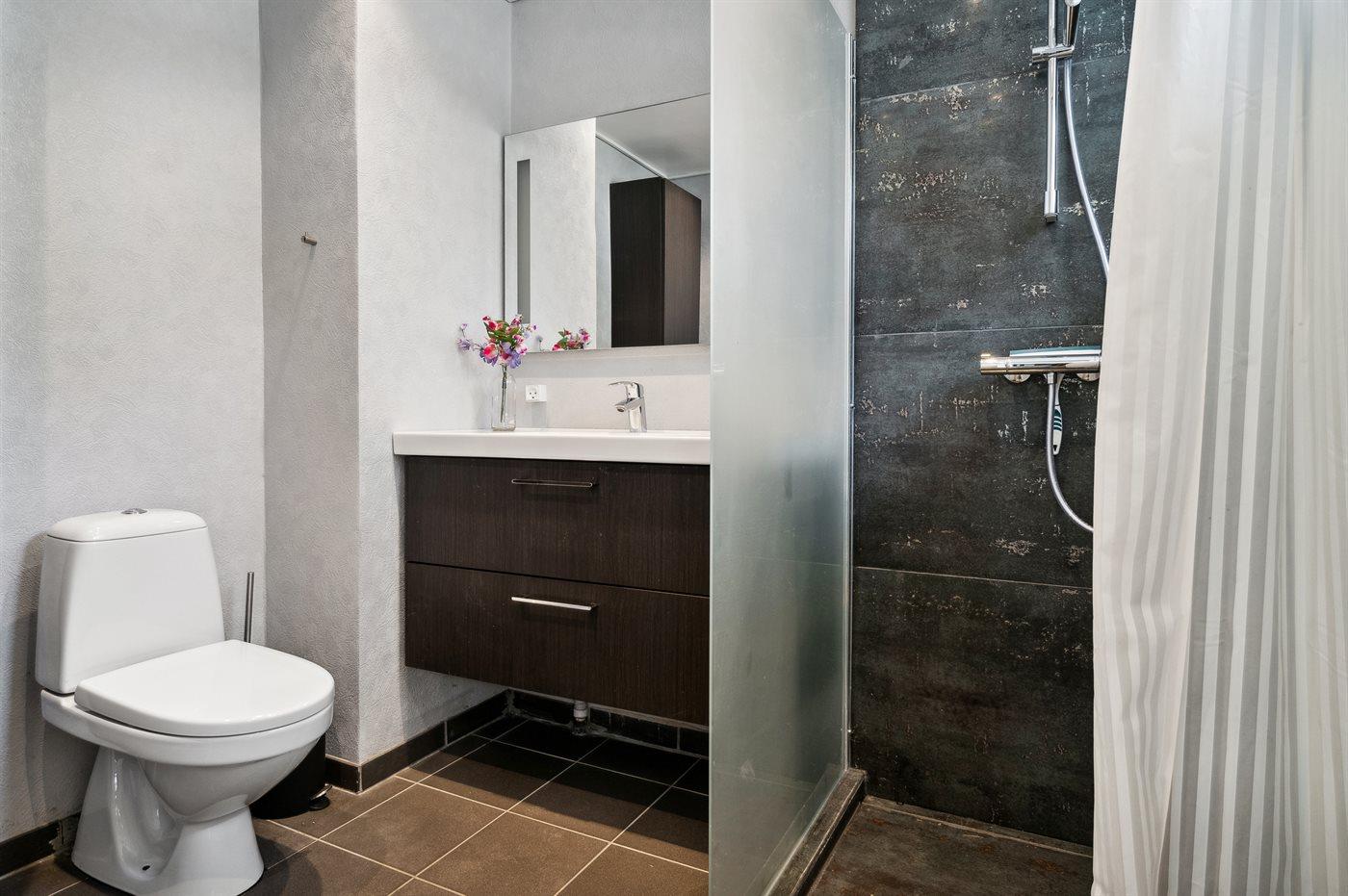 Der er 2 badeværelser med bruseniche og 2 toiletter, heraf 1 gæstetoilet.