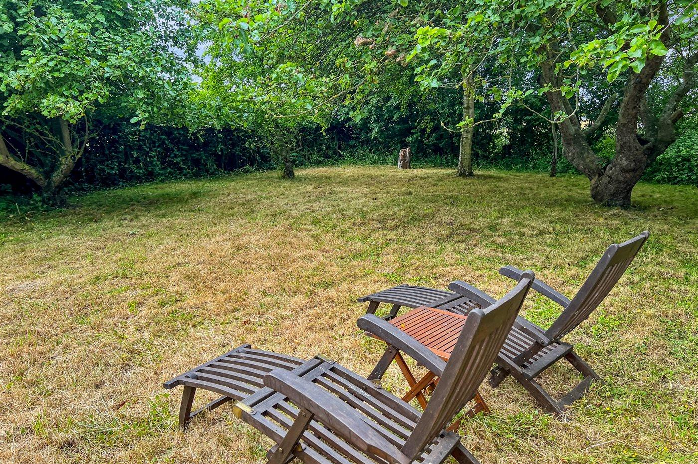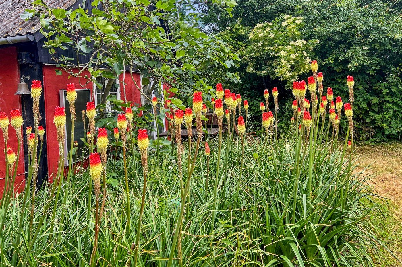Den store grund er en naturgrund med vilde blomster, insekter og alt i pagt med biodiversiteten, men også det kan blive for meget, så der er naturligvis en plæne og terrasse, så man kan nyde solen i fred og ro.