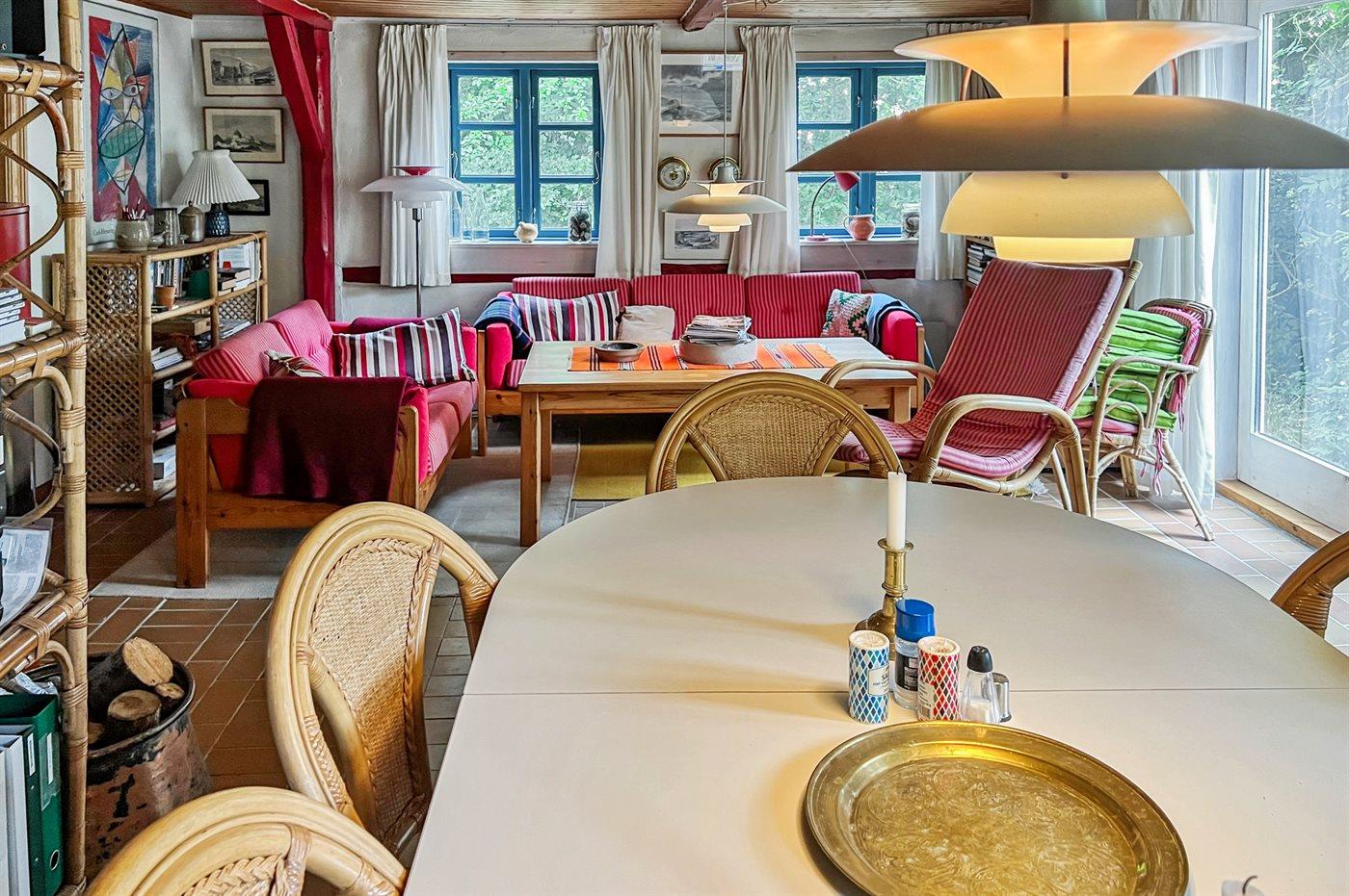 I fredelige omgivelser ligger dette hus omgivet af lægivende bevoksning i landlige omgivelser. Dueoddes sandstrande er ikke langt væk med bil og i handelsbyen Nexø, kan alt hvad man behøver hentes til den gode og fredelige tid i familiens skød.