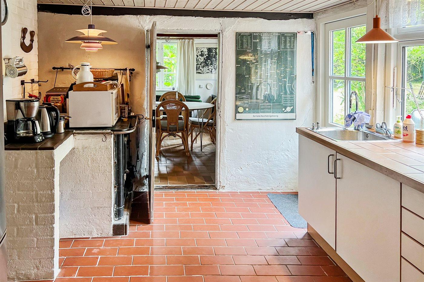 Det er en lille ejendom, som oprindeligt var et lille sted med en landbofamilie, der ernærede sig så godt som de nu kunne i den tid. Huset fremstår i dag med et nyere badeværelse og pænt velfungerende køkkenafdeling. Man fornemmer jo et vist personligt præg i stuen, hvor brændeovnen om aftenen kan opvarme alle, så det vil emme af hygge.