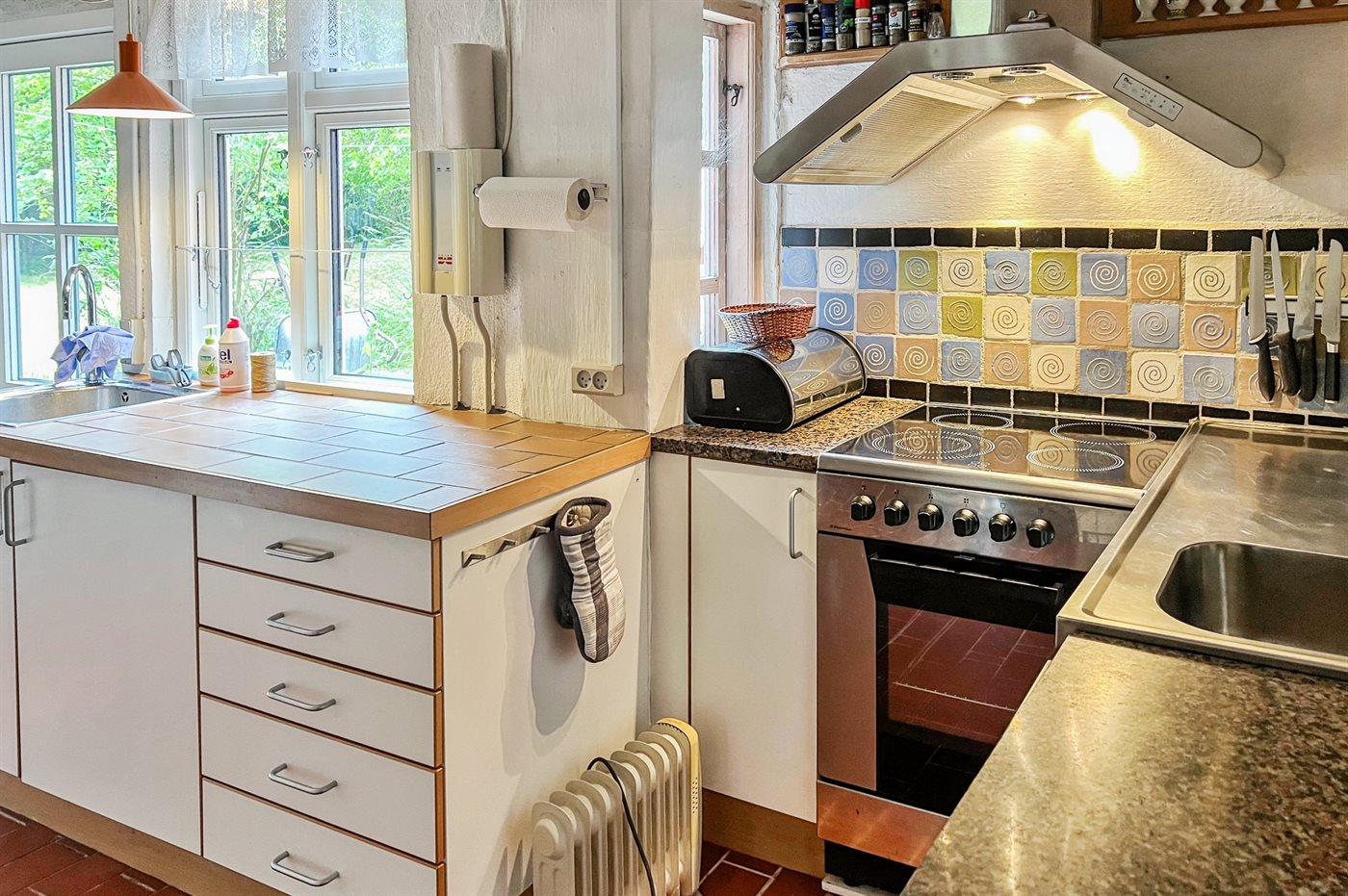 Køkkenet er udstyret med 1 køleskab. Der er 4 keramiske kogeplader, varmluftovn, mikrobølgeovn samt opvaskemaskine.