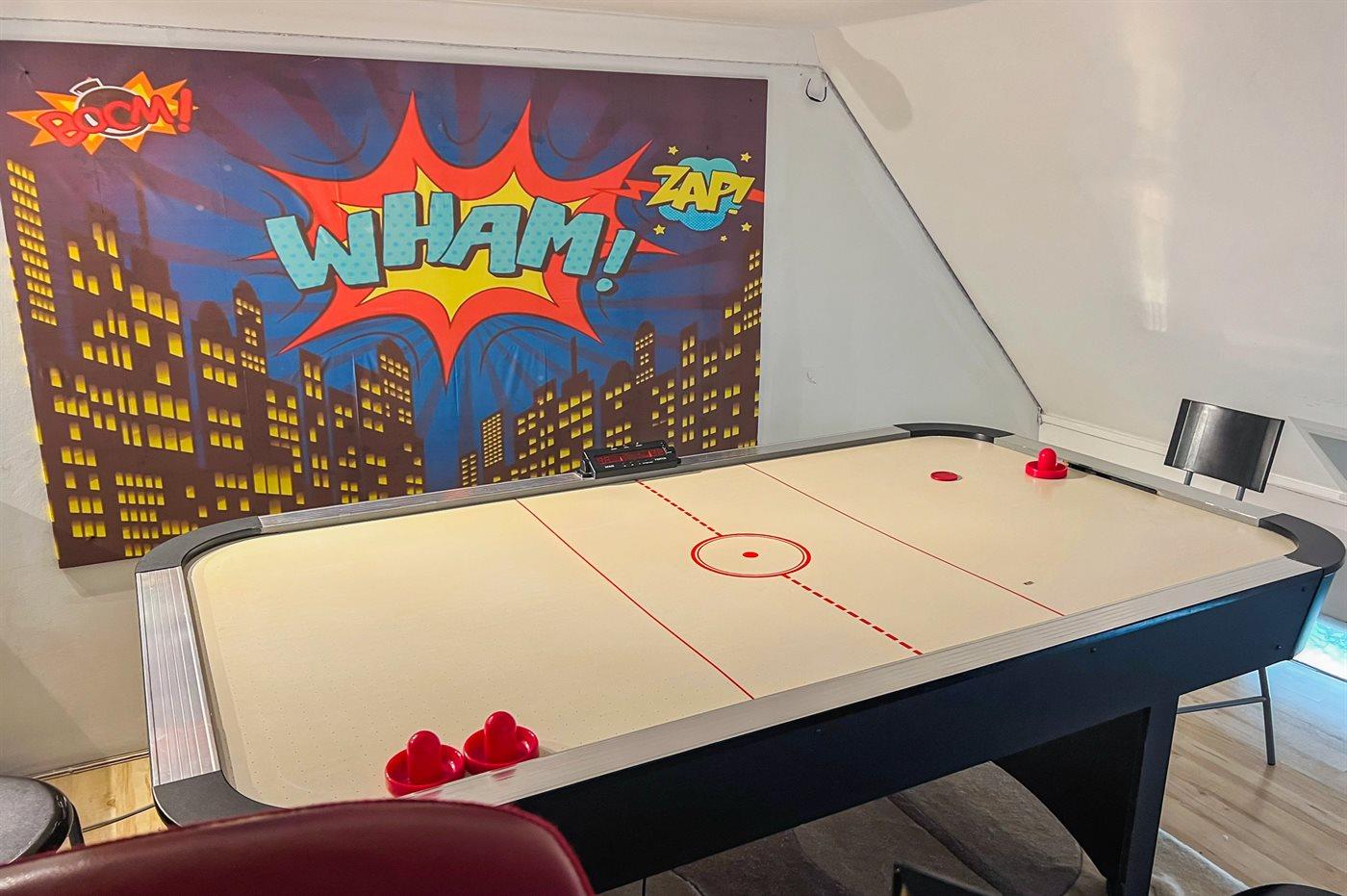 Dette dejlige feriehus på landet er exceptionelt udstyret med hjemmebiograf med surroundlyd og 8 autentiske biografstole. Aktiviteter som airhockey og bordfodbold hører også til oplevelsen, når den store familie eller vennerne vil hygge sammen i et hus, hvor der er ualmindelig god plads til samvær.