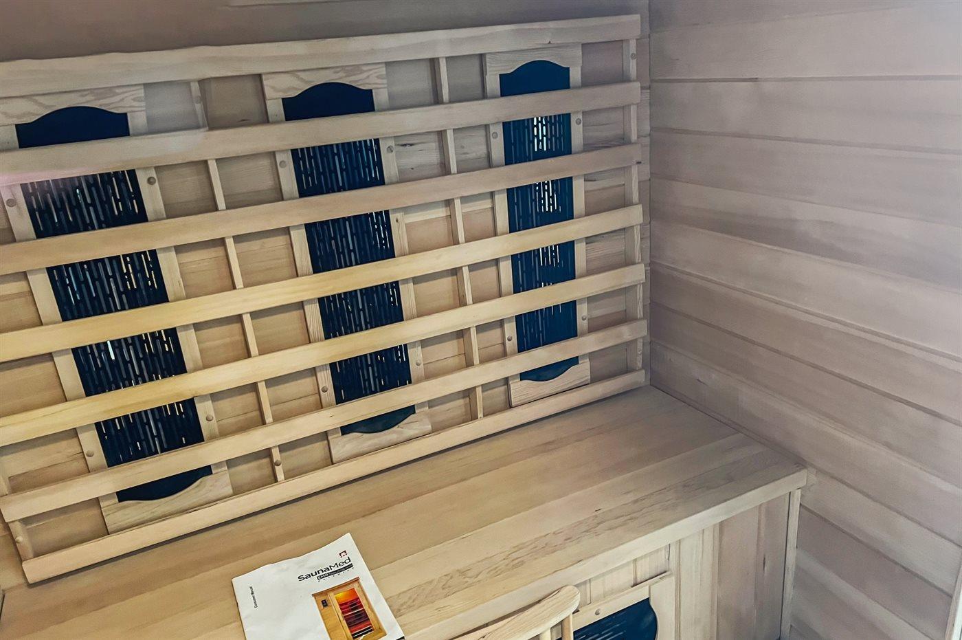 Der er 2 badeværelser med bruseniche og 2 toiletter I saunaen er der mulighed for afslapning.