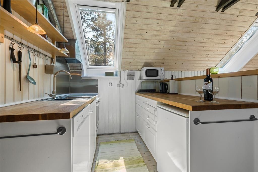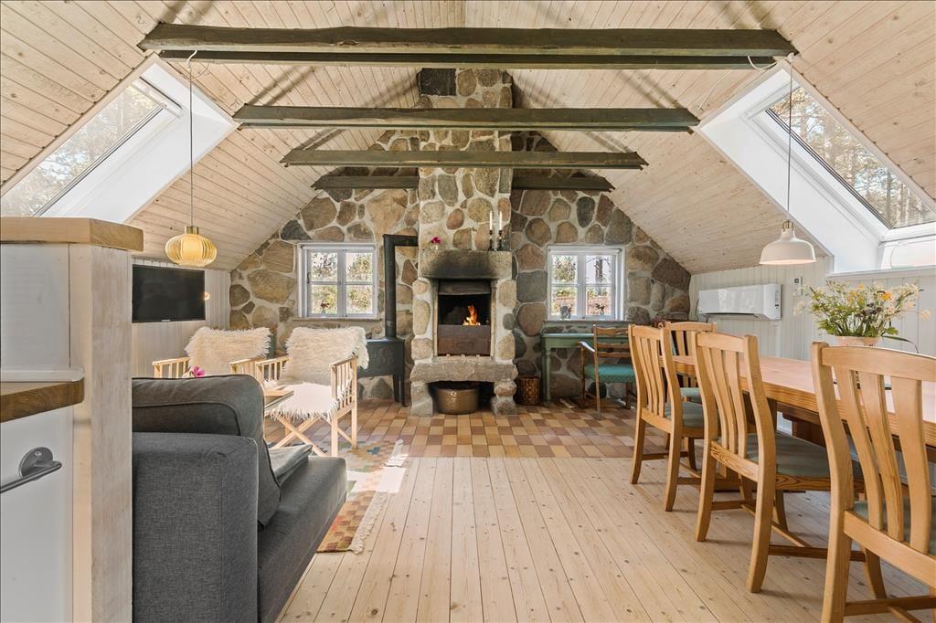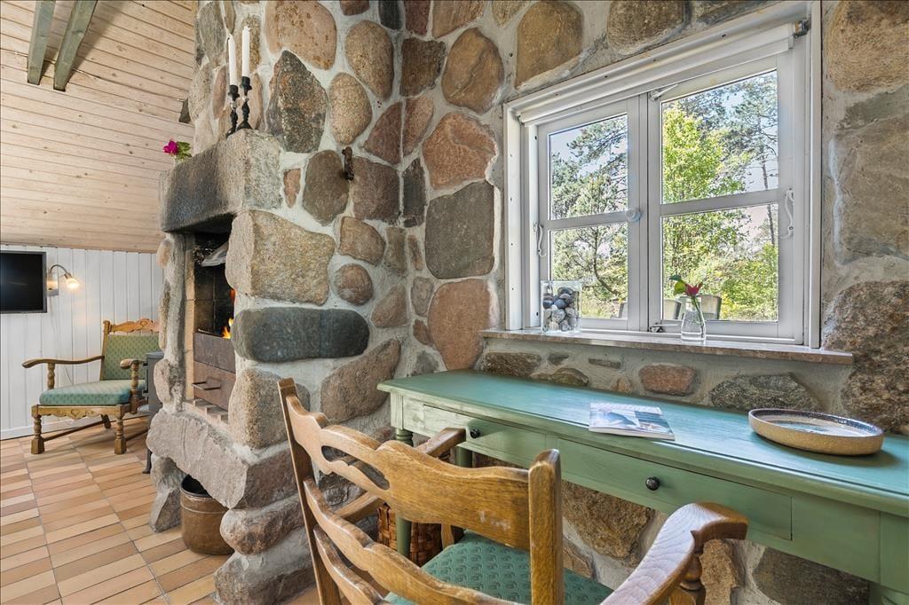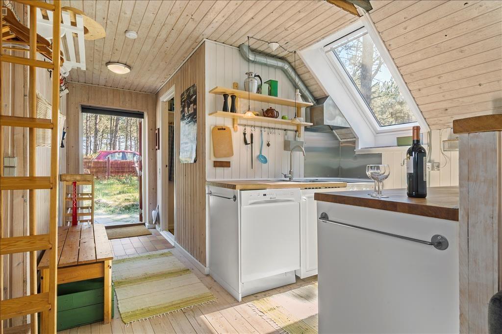 Træd ind i dette lille, men hyggelige feriehus, der byder på en varm og afslappet atmosfære. Stuen er hjertet af huset med pejs, brændeovn og varmepumpe – perfekt til hyggelige aftener. Her finder du også en komfortabel dobbelt sovesofa. Det lille, men funktionelle køkken er veludstyret med bl.a. opvaskemaskine. Soveværelset har en dejlig dobbeltseng, og i annekset venter to enkeltsenge, der giver ekstra fleksibilitet til din ferie. Badeværelset er pænt og rummeligt med bruseniche.