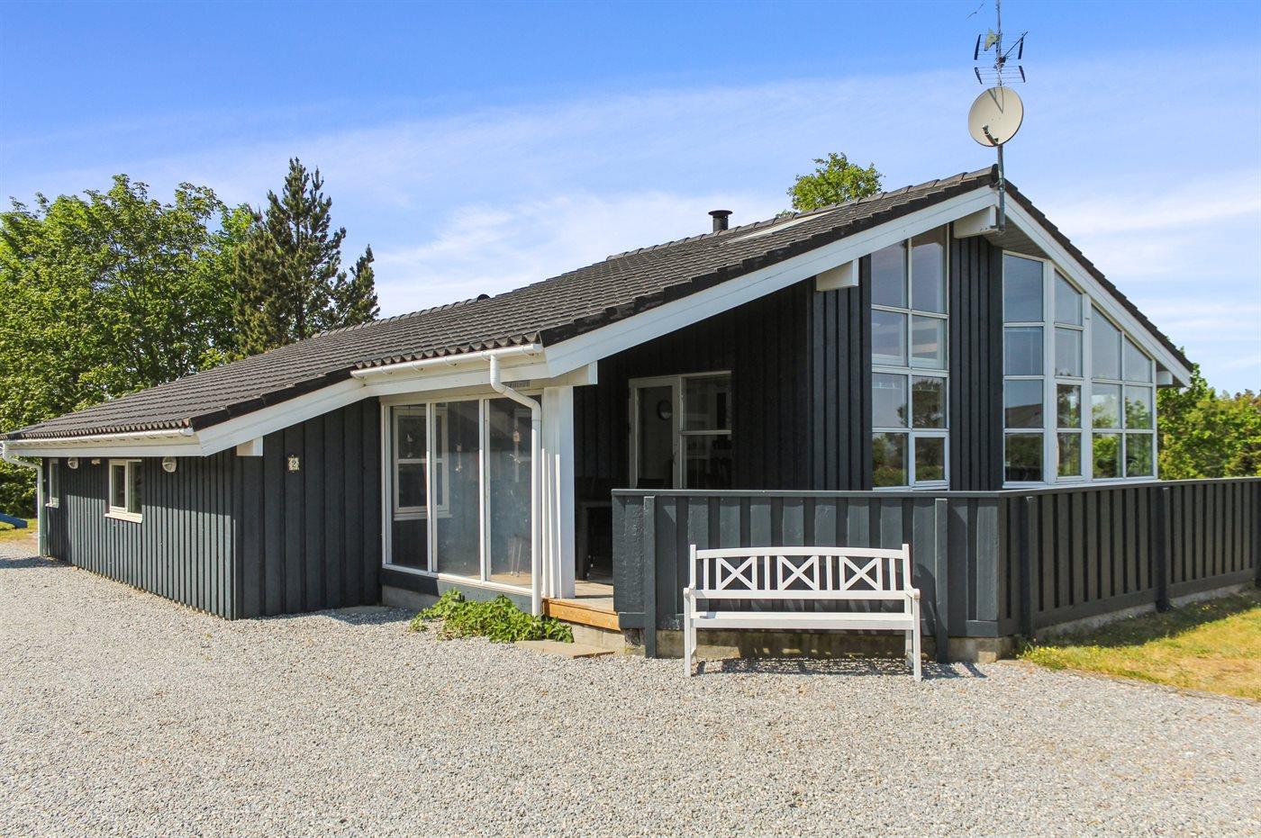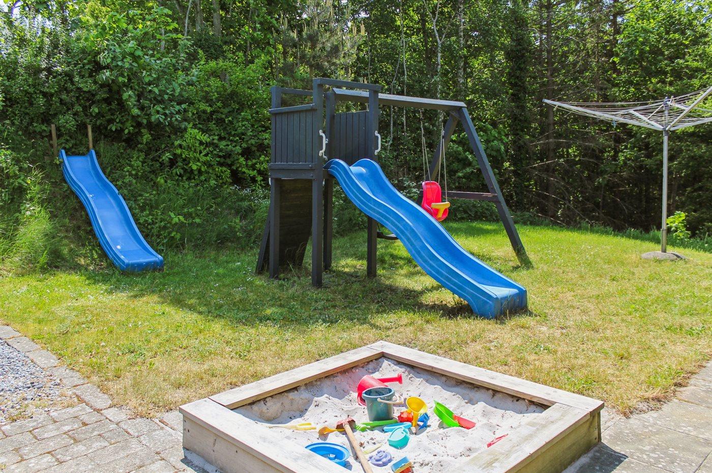 Ferieboligen er beliggende på en 3360 m² stor havegrund. Der er 1200 m til havet. Nærmeste forretning er beliggende i en afstand af 1500 m. Til ferieboligen hører 60 m² terrasseareal. Desuden er der 14 m² overdækket terrasse. Der er redskabsrum. Gynge. Sandkasse. Rutchebane. Der er carport til rådighed. Parkering ved ferieboligen.