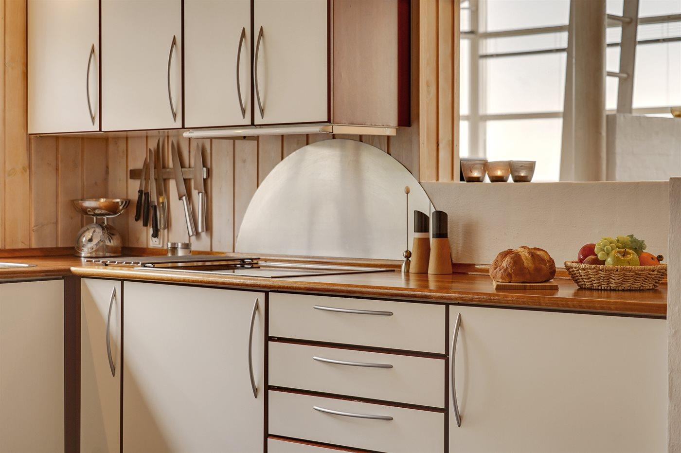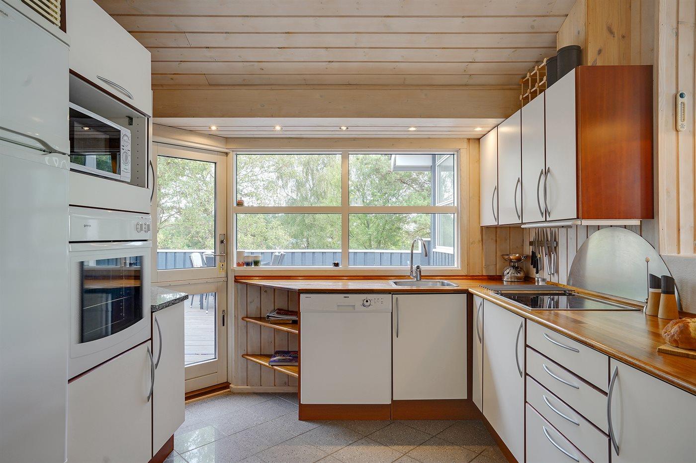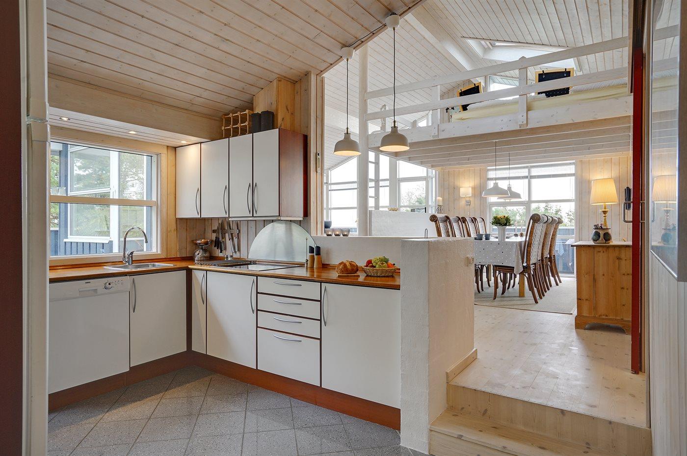 Køkkenet er udstyret med 1 køleskab. Der er 4 keramiske kogeplader, varmluftovn, mikrobølgeovn samt opvaskemaskine.