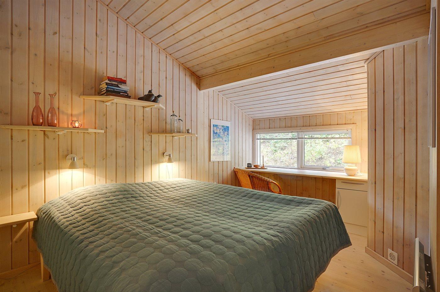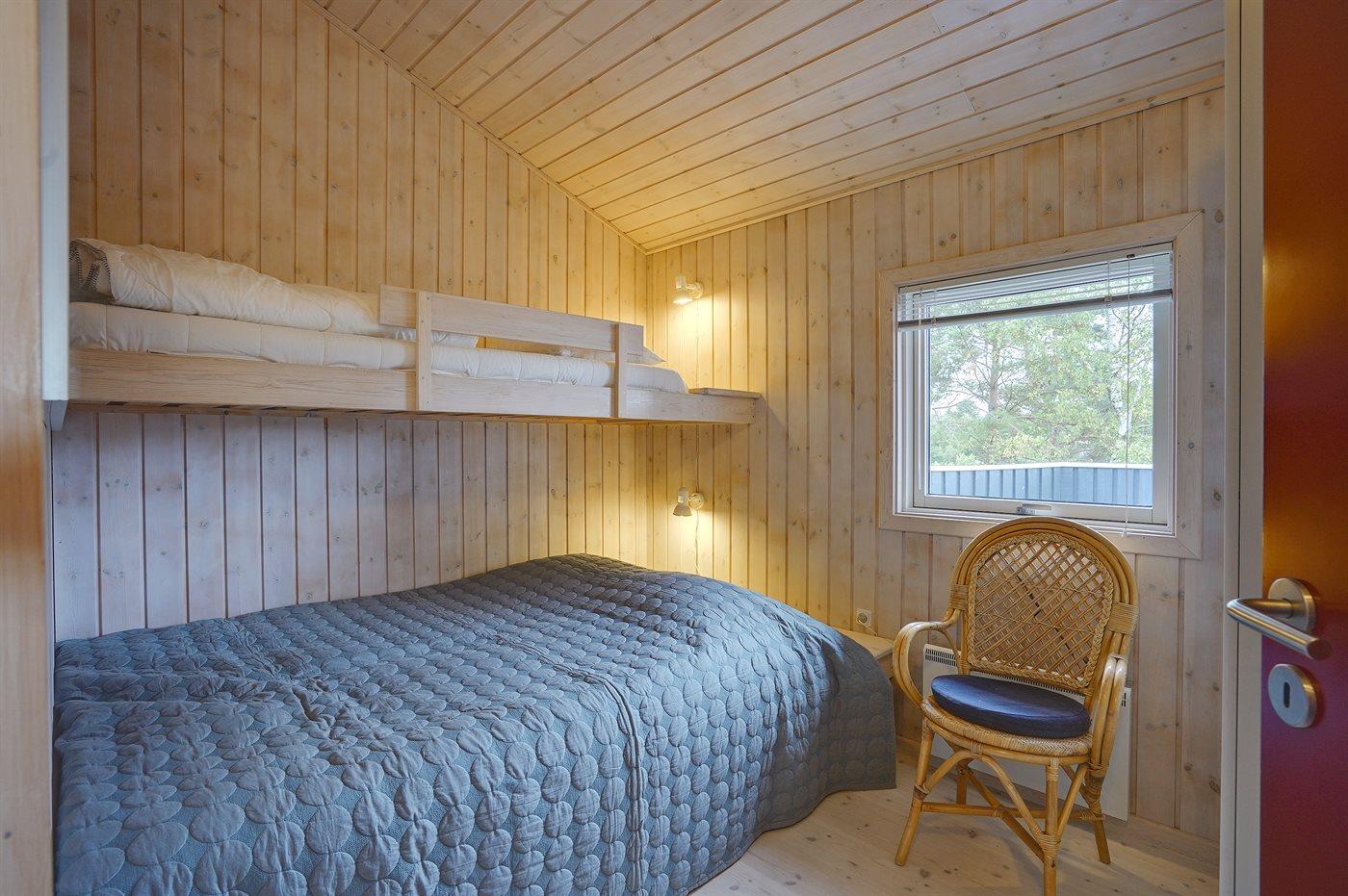 Der er i alt 3 soveværelser. Sovepladserne fordeler sig på: 6 sovepladser i dobbeltsenge.1 soveplads i køjeseng. 1 soveplads på madras. 1 af disse sovepladser befinder sig på husets hems. Derudover er der 1 stk. barneseng.