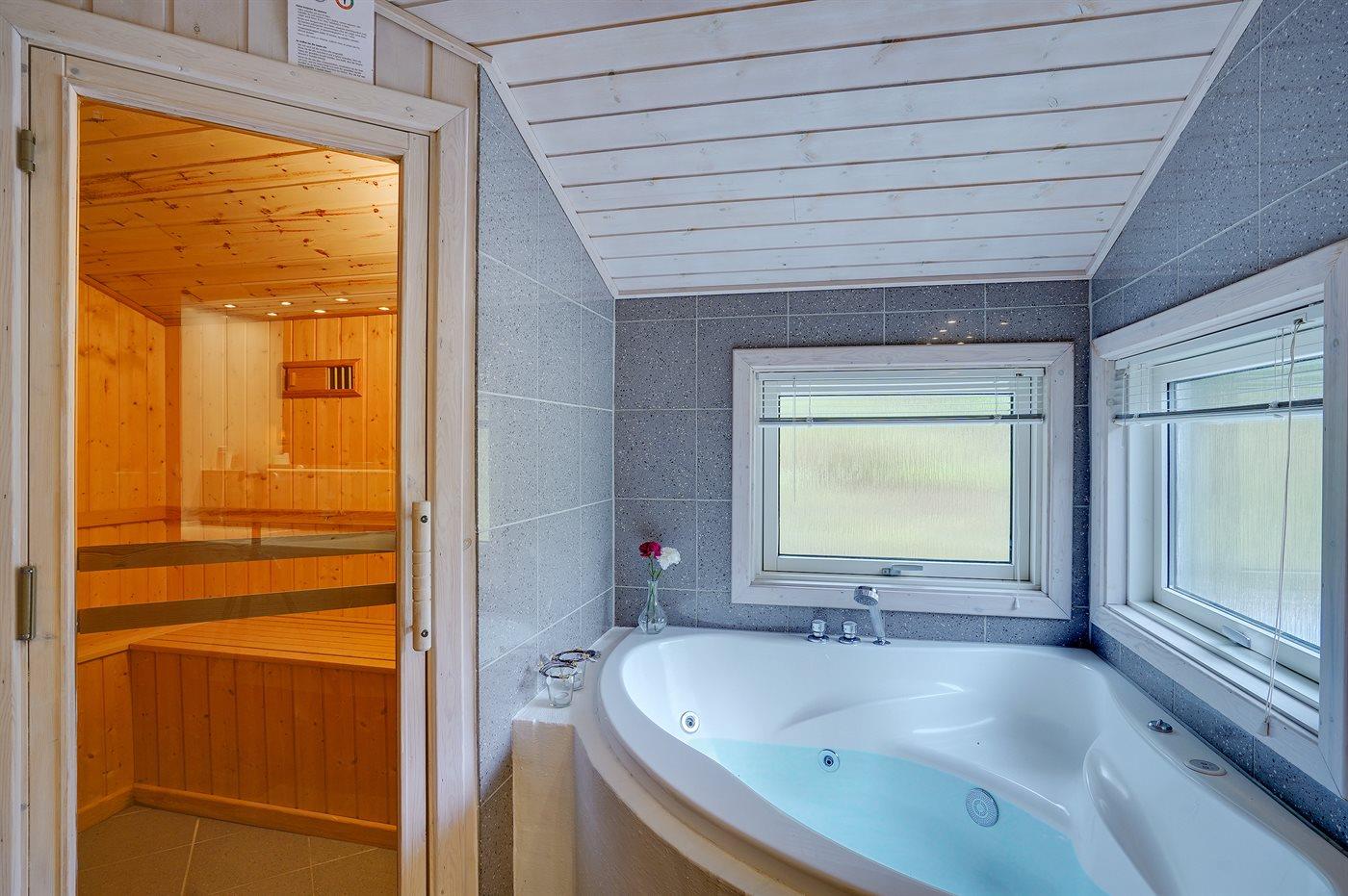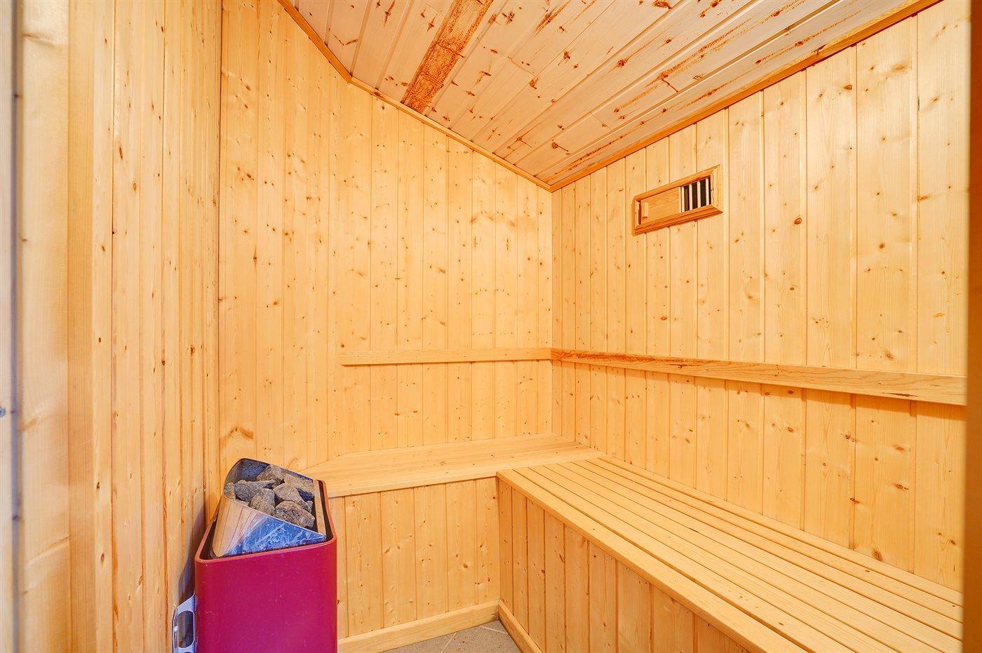 Der er 2 badeværelser med bruseniche og 2 toiletter. Der er gulvvarme på 2 badeværelser. I saunaen er der mulighed for afslapning.