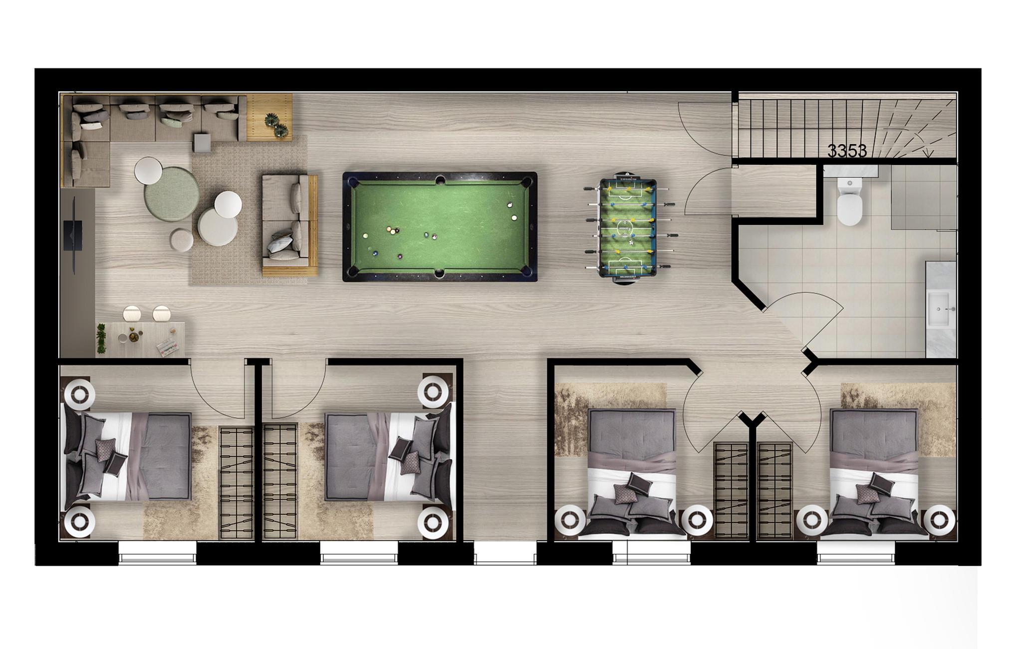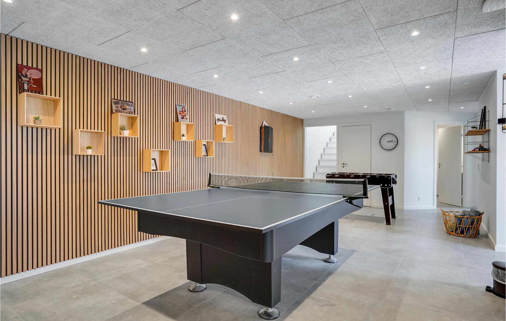 Huset har to etager og et anneks, som huser et eksklusivt wellness-område med pool, udendørsspa og sauna, samt en overdækket terrasse. Der er lagt op til nogle fantastiske ferieminder, hvor I muntre jer med at bade i poolen, slappe af i den elegante udendørsspa med plads til fire til seks personer eller få varmen i saunaen. I aktivitetsrummet kan I dyste over et spil billard, bordtennis eller fodbold. Der er også et hyggeligt sofasæt med fladskærms-tv med spillekonsol. Køkkenet er veludstyret og i åben forbindelse med spisebord og stue, så her kan I hygge jer med madlavningen og sludre med gæsterne imens.