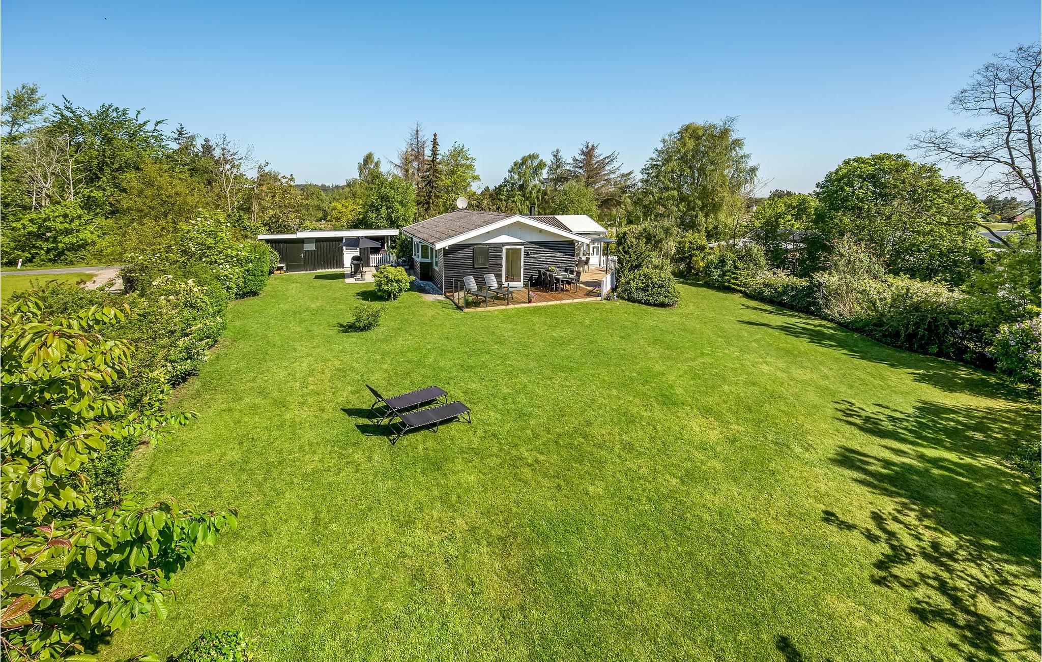 Hyggeligt sommerhus nær Ebeltoft med terrasse, naturgrund og oplader til elbiler.