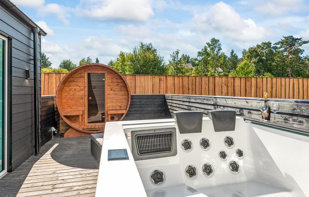 Nyd solen på liggestolene, eller slap af i boblebadet eller i tøndesaunaen. Mulighederne er mange! Den indbydende, rummelige og overdækkede terrasse er perfekt når I vil grille og nyde middagen og de lyse aftener i det fri. Efter middagen kan I arrangere en bordtennisturnering og kåre en vinder.