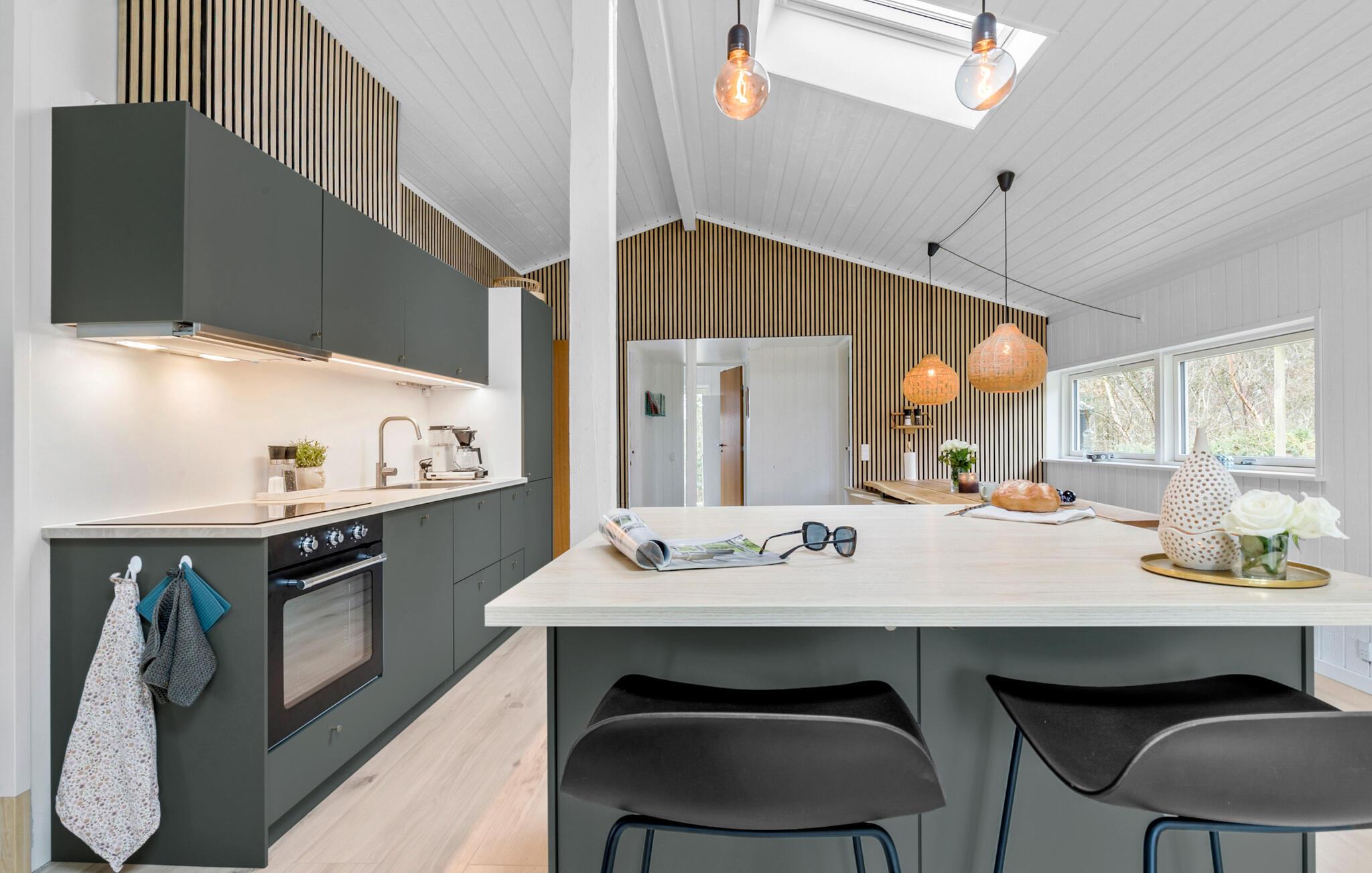 Tag familien under armen og rejs til Djursland, hvor I i Boeslum Bakker får en fantastisk base i dette lækre træhus. Huset er virkelig flot indrettet med et åbent boligkoncept, dejligt lysindfald og et stilrent interiør, der udstråler elegance og gør det nemt at sænke skuldrene. Nyd godt af de flotte materialer, de moderne møbler og tænd op i brændeovnen, der giver stemning og et rart lydtapet på de lidt køligere dage. Køkkenet er rummeligt og veludstyret, så her kan familiens kokke kræse om livretterne, mens andre dækker op til den store middag ved spisebordet med udsigt til omgivelserne.