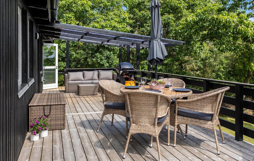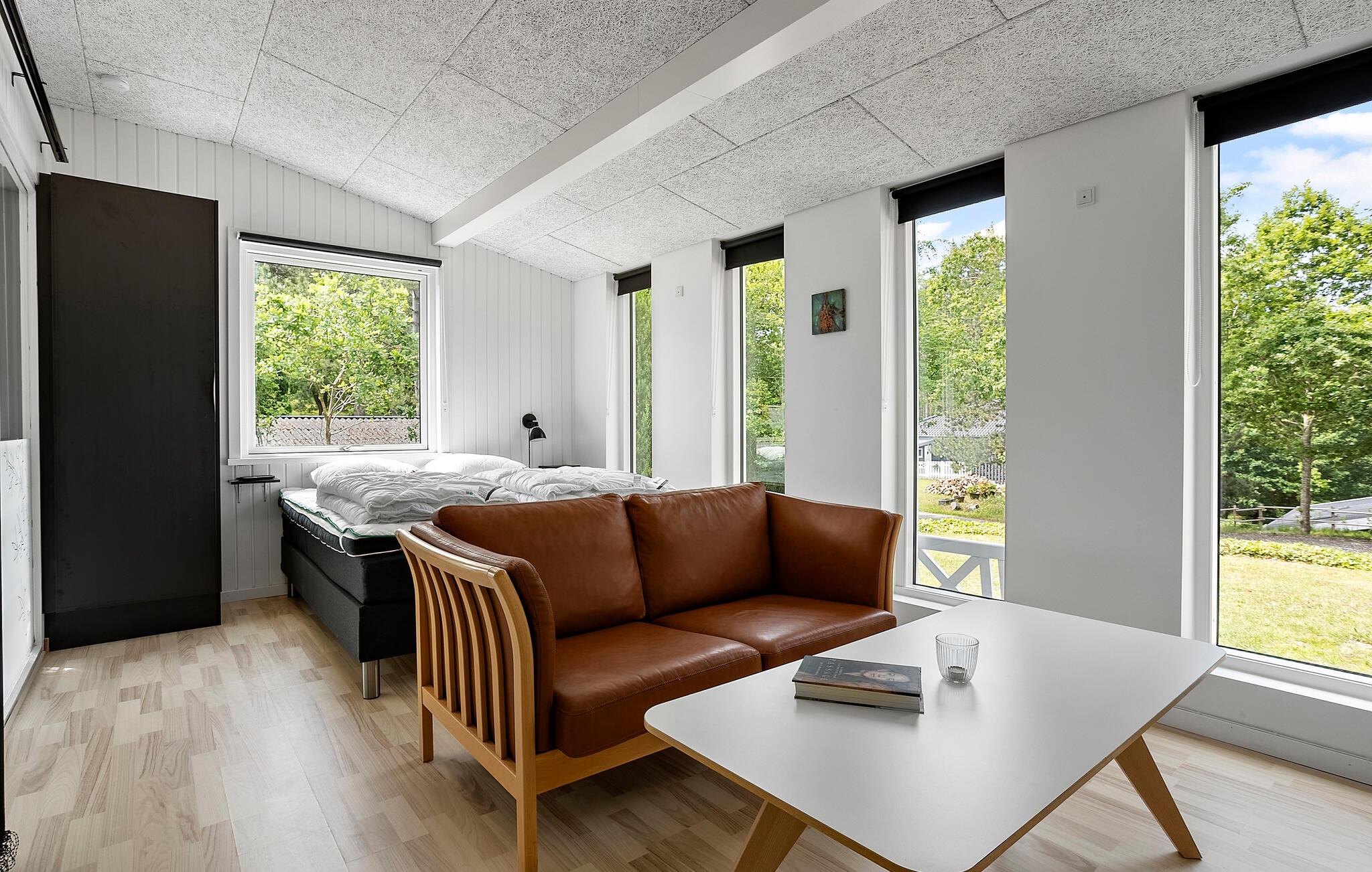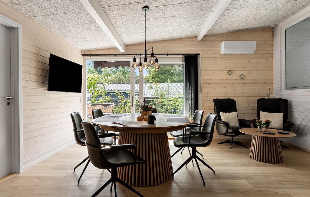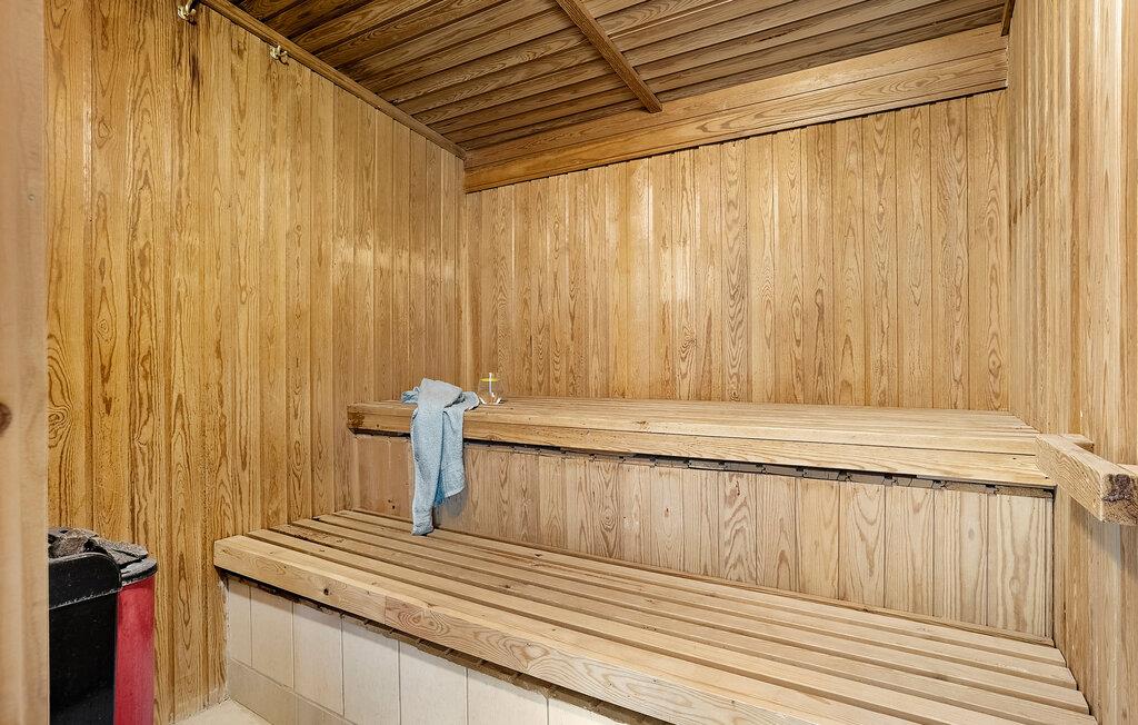 Dette komfortable feriehus giver jer en rolig beliggenhed, stilfuld indretning og et bredt udvalg af aktiviteter for alle aldre, både indendørs og udendørs. Tilbring tid sammen i den åbne stue, som giver jer god rammer til afslapning. Find sammen omkring det brede spisebord til dagens måltider eller brætspil. Find jer til rette i lænestolene i opholdsstuen og afslut dagen på en afslappet måde. I wellness-området med indendørs pool og sauna kan I rigtig lade batterierne op.