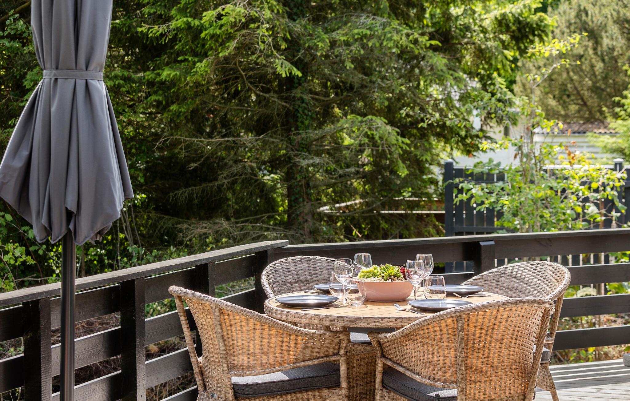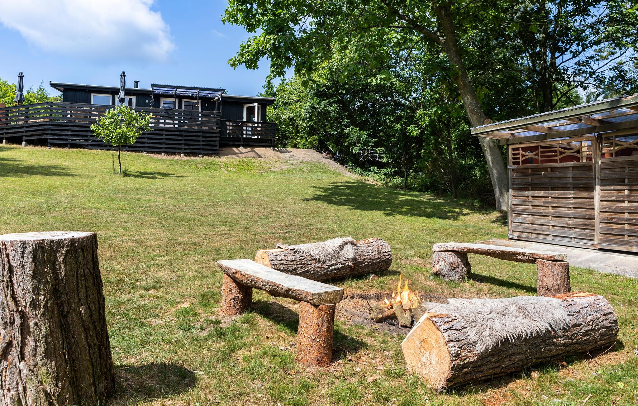 Nyd den skønne udsigt fra terrassen, der strækker sig helt ned til havet. Haven har flere gode solskinskroge, hvor I kan sætte jer med en kop kaffe og nyde omgivelserne. Når mørket falder på, er det hyggeligt at tænde bål og bage snobrød eller riste skumfiduser.