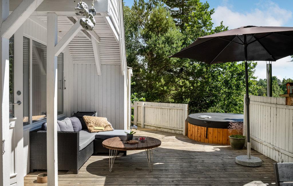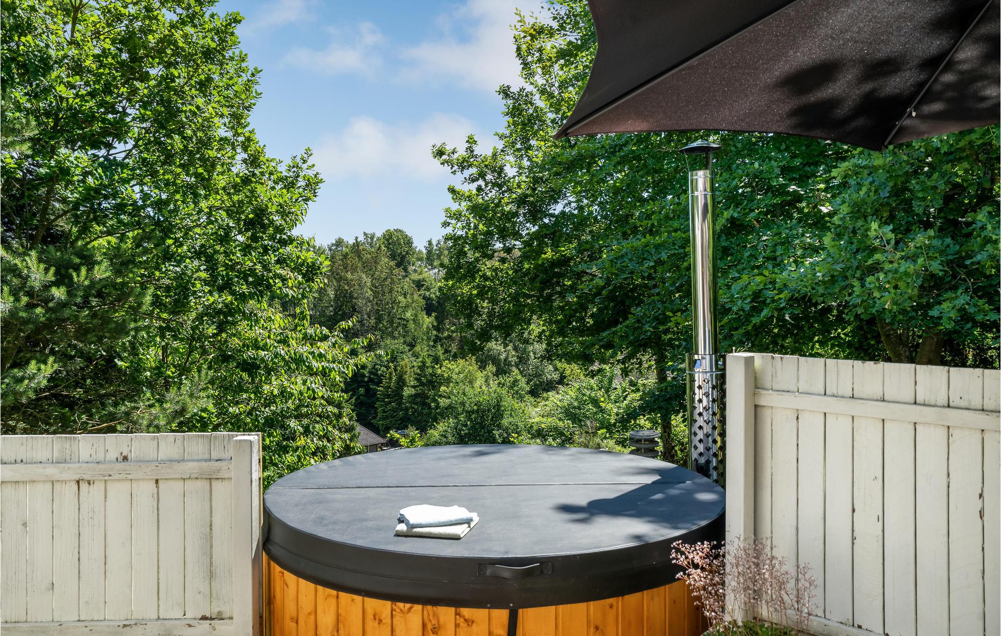 Tilbring en herlig ferie sammen med familien inkl. jeres firbenede venner i dette rummelige feriehus på Mols. Ikke blot det store spisekøkken lægger op til mange hyggetimer, også udenfor finder I solrige og vindstille hjørner på terrassen. Her kan I nyde morgenmaden og en kop kaffe, mens I planlægger dagen sammen. Om eftermiddagen indbyder den store have til sjov og leg leg med børn og kæledyr, mens I om aftenen kan sætte jer til rette ved bålstedet og nyde roen. Tag jeres soveposer og liggeunderlag med, hvis I får lyst til at overnatte i shelteret og mærke udelivet. Spabadet på terrassen inviterer til kærkommen afslapning under stjernehimlen efter en dag med aktiviteter og nye indtryk.