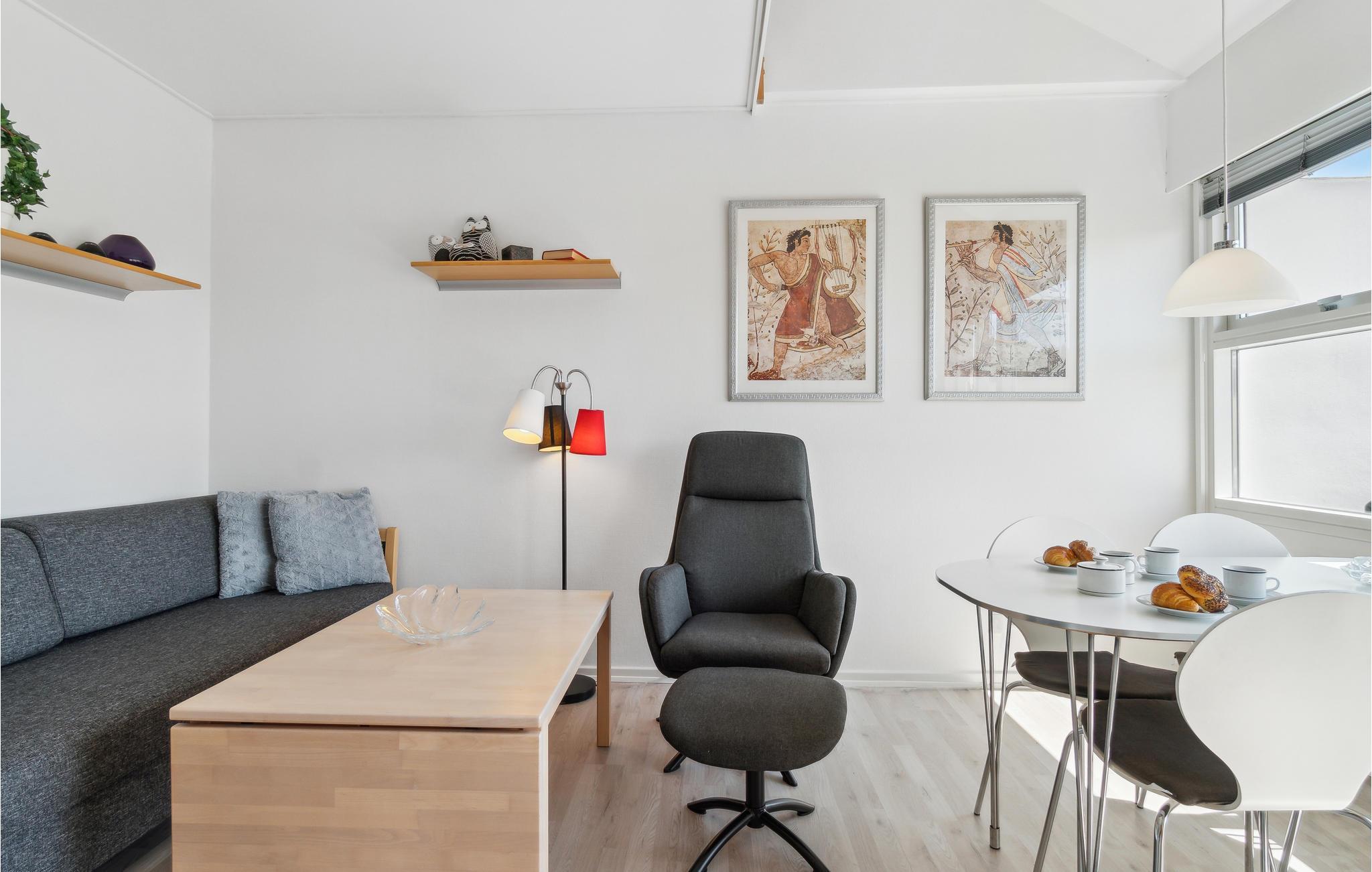 Lejligheden er lyst og venligt indrettet med sovesofa for to personer (150 cm) og en hems med to boksmadrasser (ikke ståhøjde). Fra stuen er der udgang til en privat terrasse med havemøbler og grill, så der er basis for mange skønne sommeraftener under åben himmel.
