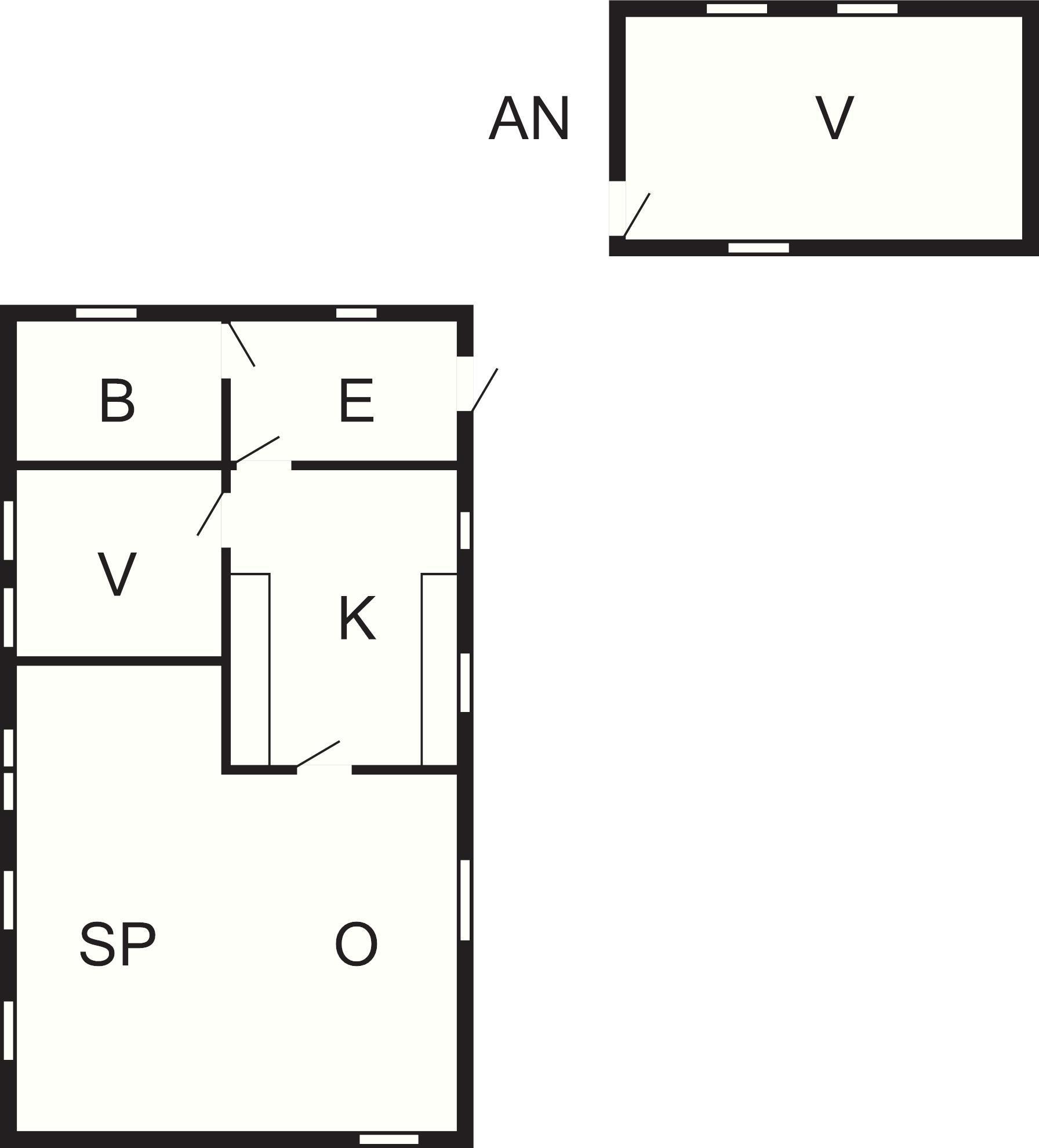 Ved siden af hovedhuset er der et stort anneks på 35 m2 med to sovesofaer og med synlige bjælker i loftet.