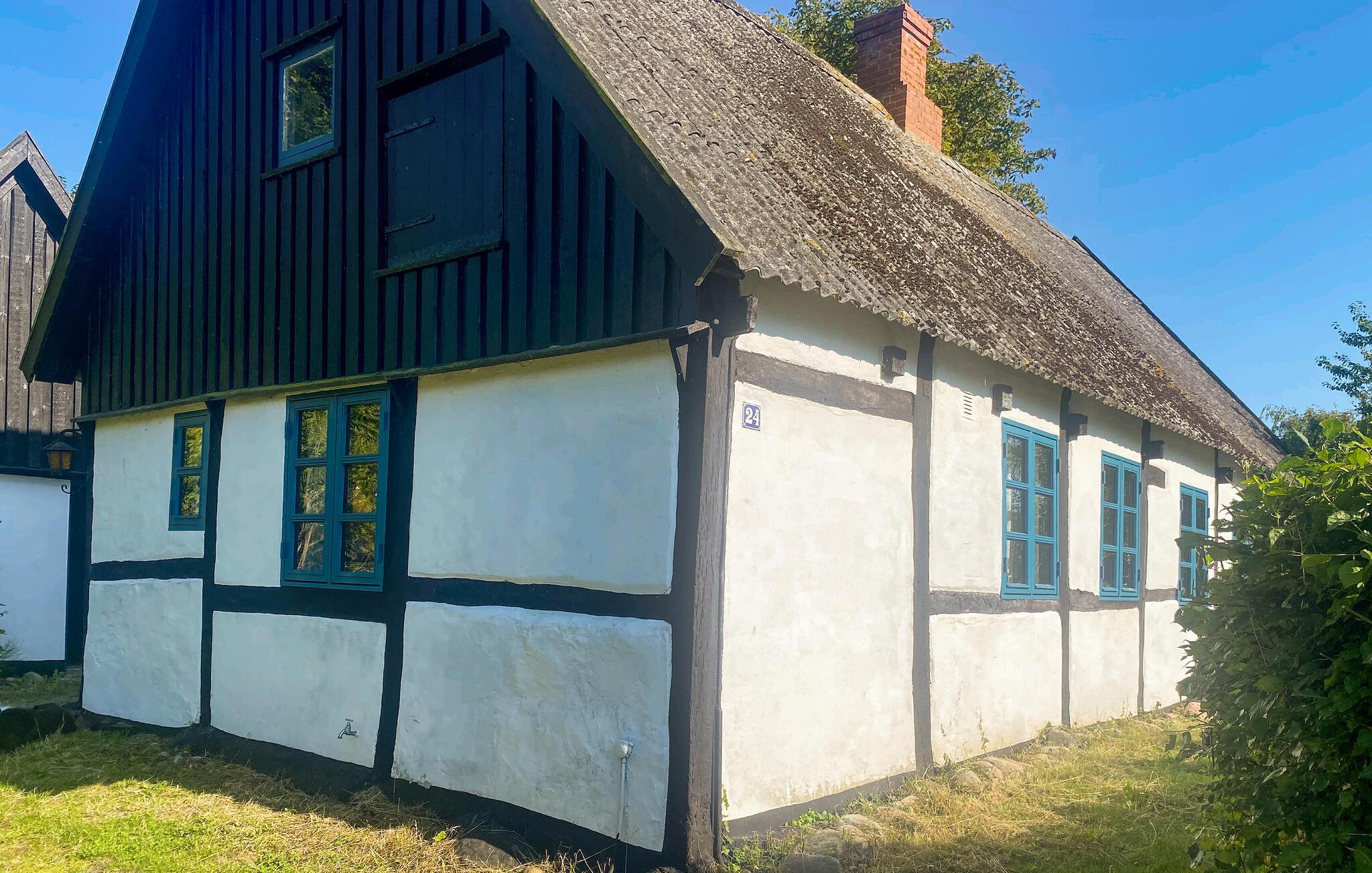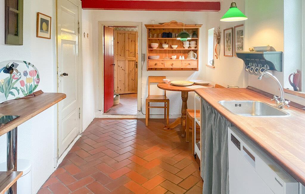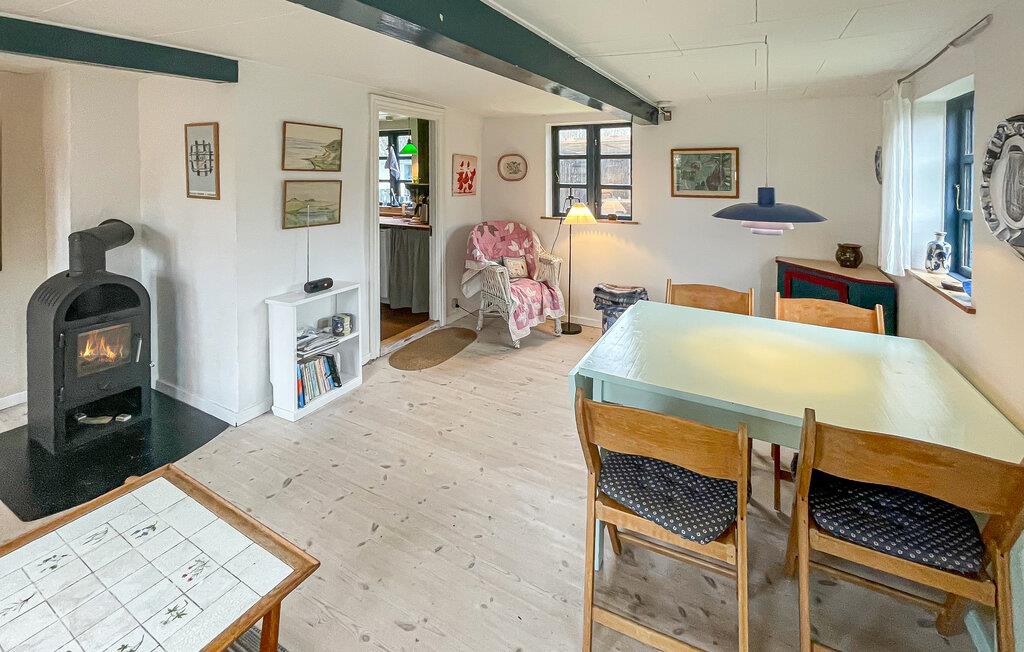 Nyd en ubekymret ferie i dette stråtækte feriehus. Huset er enkelt og funktionelt med lyse vægge, trægulve og praktiske møbler. Find jer godt til rette i sofaen og brug opholdsstuen til spilleaftener eller rolige læsestunder. Åbn vinduerne og lad den friske luft komme ind, mens I tilbereder måltider eller planlægger jeres dag.