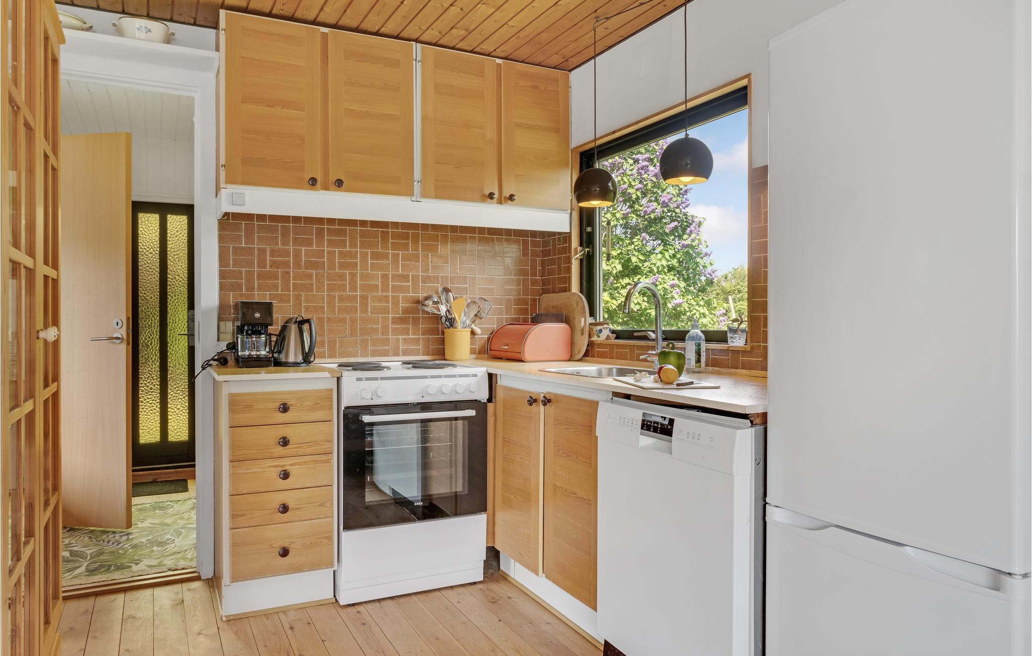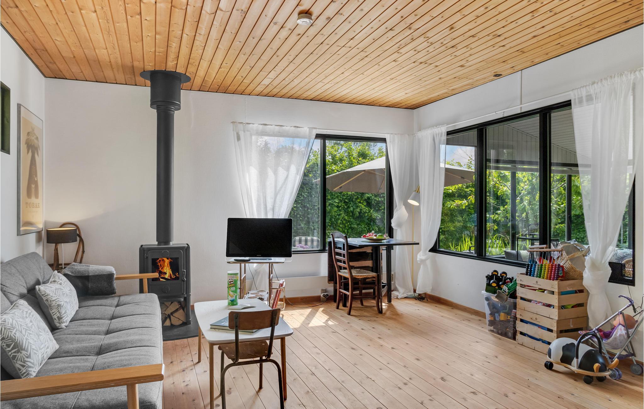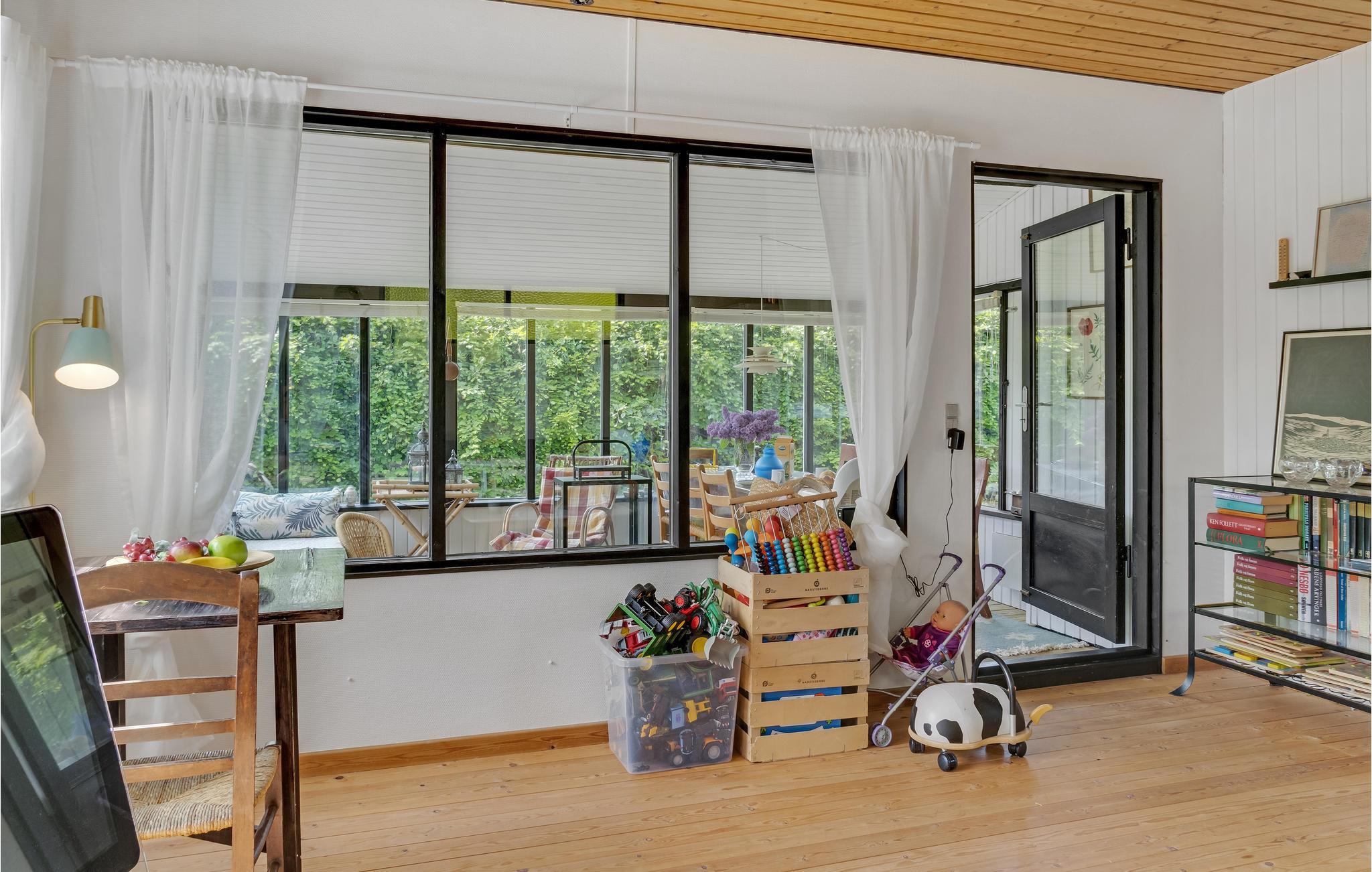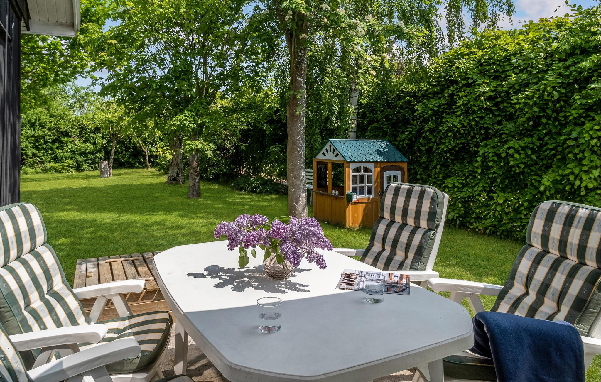 Skægge spilleaftener i udestuen, latter, glade hvin i haven og duften af syrenblomster. Lyder det ikke herligt? En hyggelig ferie i dette familievenlige feriehus vil give jer et pusterum fra hverdagens stress. Her har I plads til at lege, slappe af og ganske enkelt nyde nu’et. Børnene kan gå på opdagelse i legetøjet og forsvinde ind i legens verden, mens I gør maden klar i køkkenet. Sæt jer ud på terrassen tidligt om morgen med en kop kaffe i hånden og nyd stilheden. Senere på dagen er der frugt og leverpostejmadder under parasollen. Her finder jeres børn også et legehus og en græsplæne til boldspil.