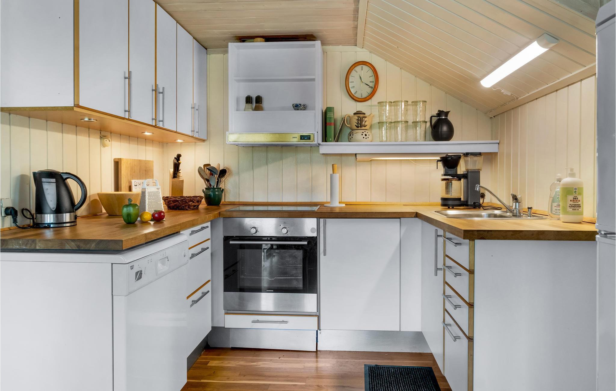 Tag til Bogø med familien og tilbring ferien i dette hyggelige feriehus, der inviterer til ro og nærvær. Takket være husets åbne plan kan I stadig snakke med jeres børn, der spiller kort på sofaen, mens I laver mad. Saml familien til en omgang matador ved spisebordet og mærk varmen fra brændeovnen på kølige aftener.