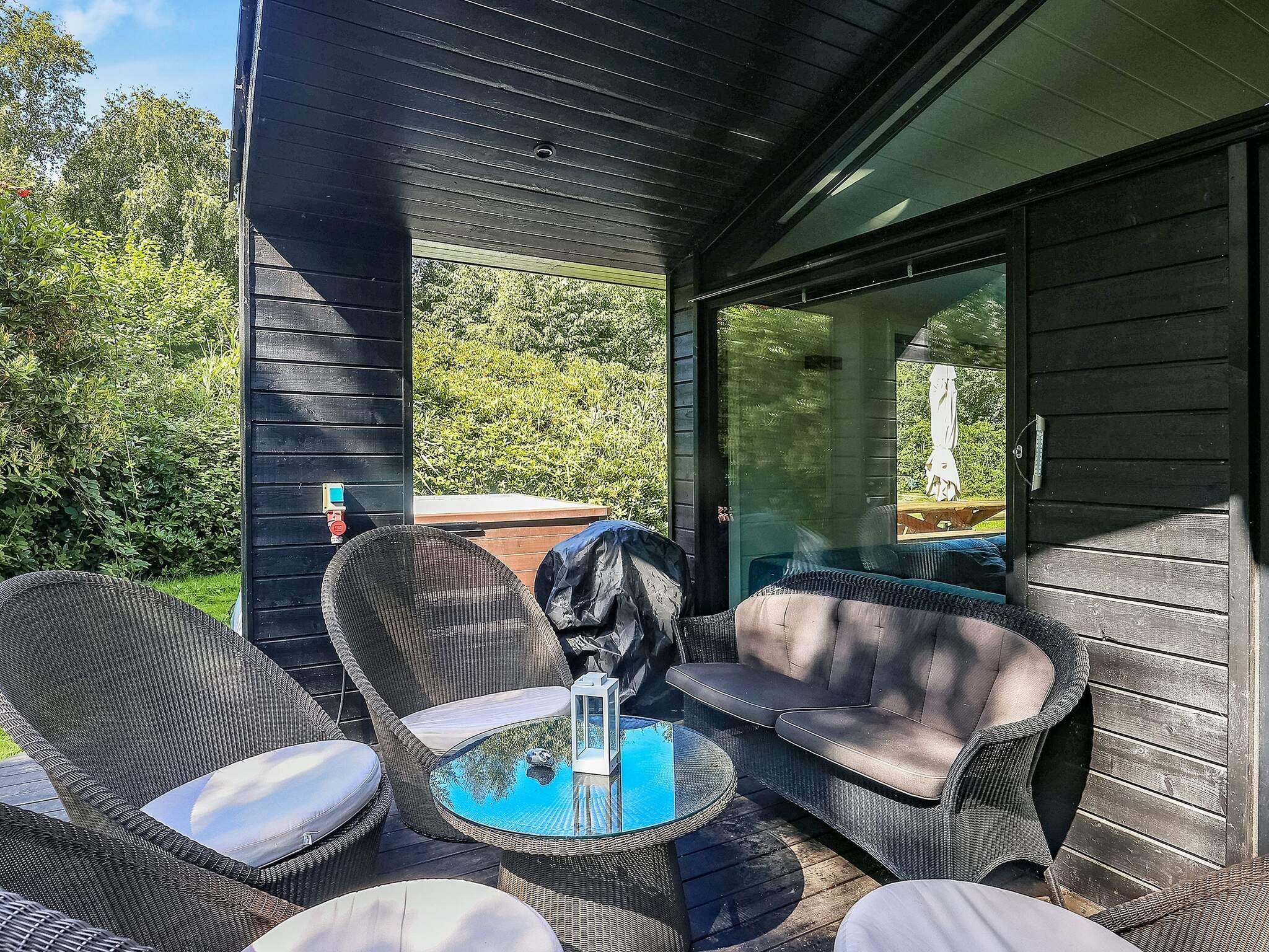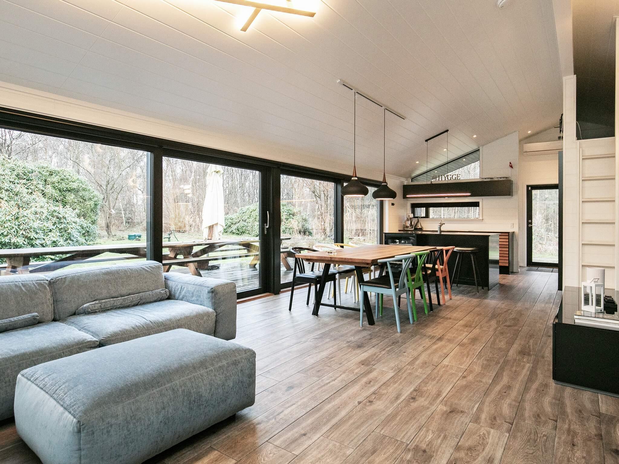 Huset er omhyggeligt udstyret til familier eller grupper, og byder på to badeværelser, et velindrettet opholds- og spiseområde i åbent plan og direkte adgang til store terrasser. Store vinduespartier fylder stuen med lysindfald, hvor du også finder et hyggeligt hems (hems) med tv og panoramaudsigt over den omkringliggende skov og spabad nedenunder. Det moderne køkken er fuldt udstyret med alt hvad du behøver for at tilberede måltider, mens tre lyse soveværelser giver rigelig opbevaring og en god nats søvn. Højhastigheds fiberinternet (50/50 Mbit) gør det nemt at holde forbindelsen eller streame fra dine egne udbydere.