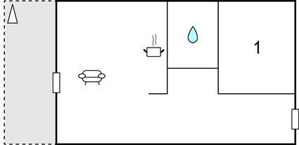 Kun det store grønne fællesareal adskiller lejligheden og vandet. Lejligheden indeholder et køkken, som ligger i åben forbindelse med stuen. I stuen er der en dobbelt sovesofa. Herudover er der et separat soveværelse. Fra stuen er der udgang til den hyggelig terrasse. Man har desuden adgang til de grønne fællesarealer og tennisbane.