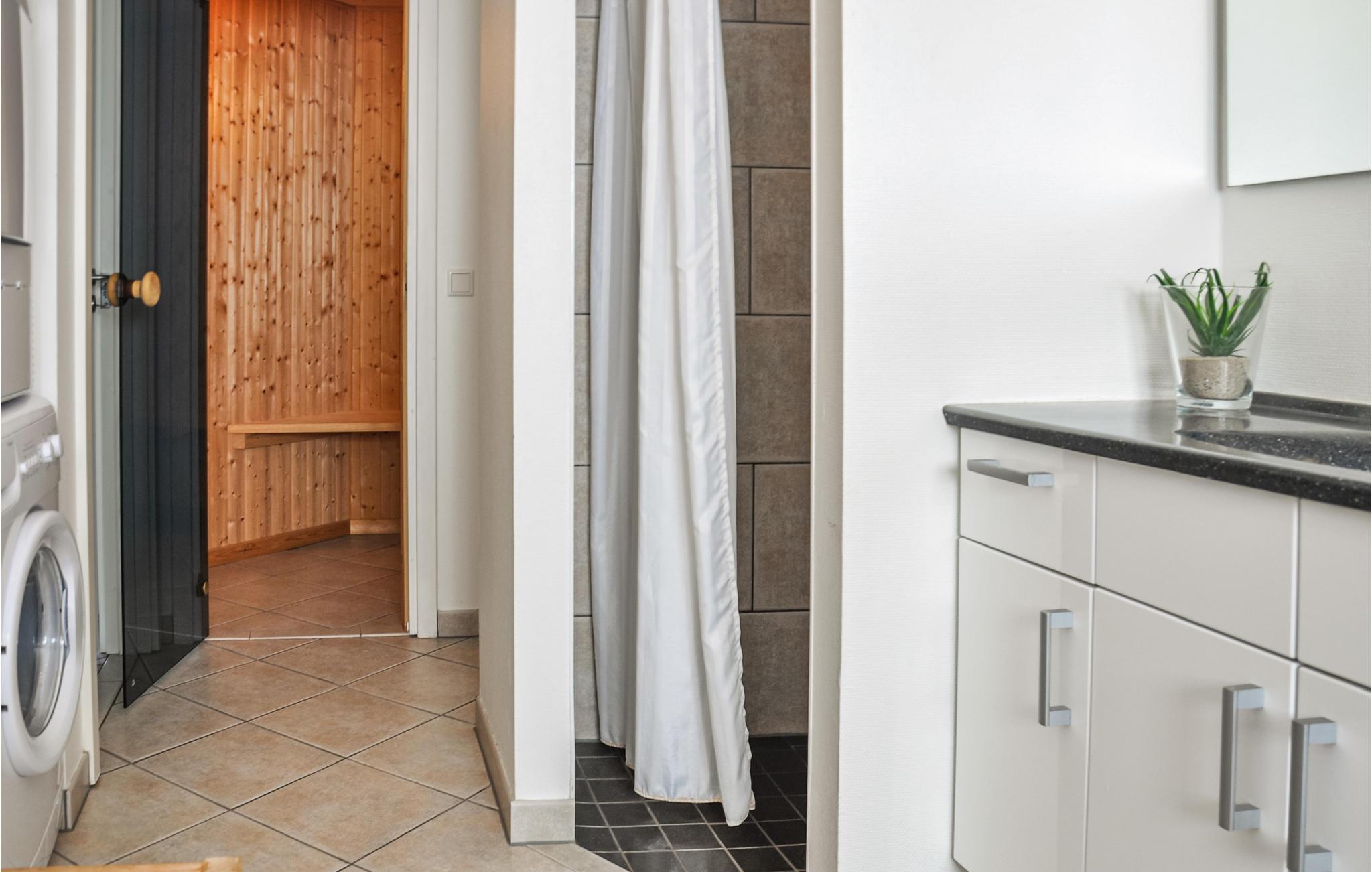 Luksuslejlighed ved Bogense Strand med havudsigt, åben terrasse, sauna og spabad for den perfekte ferieoplevelse.