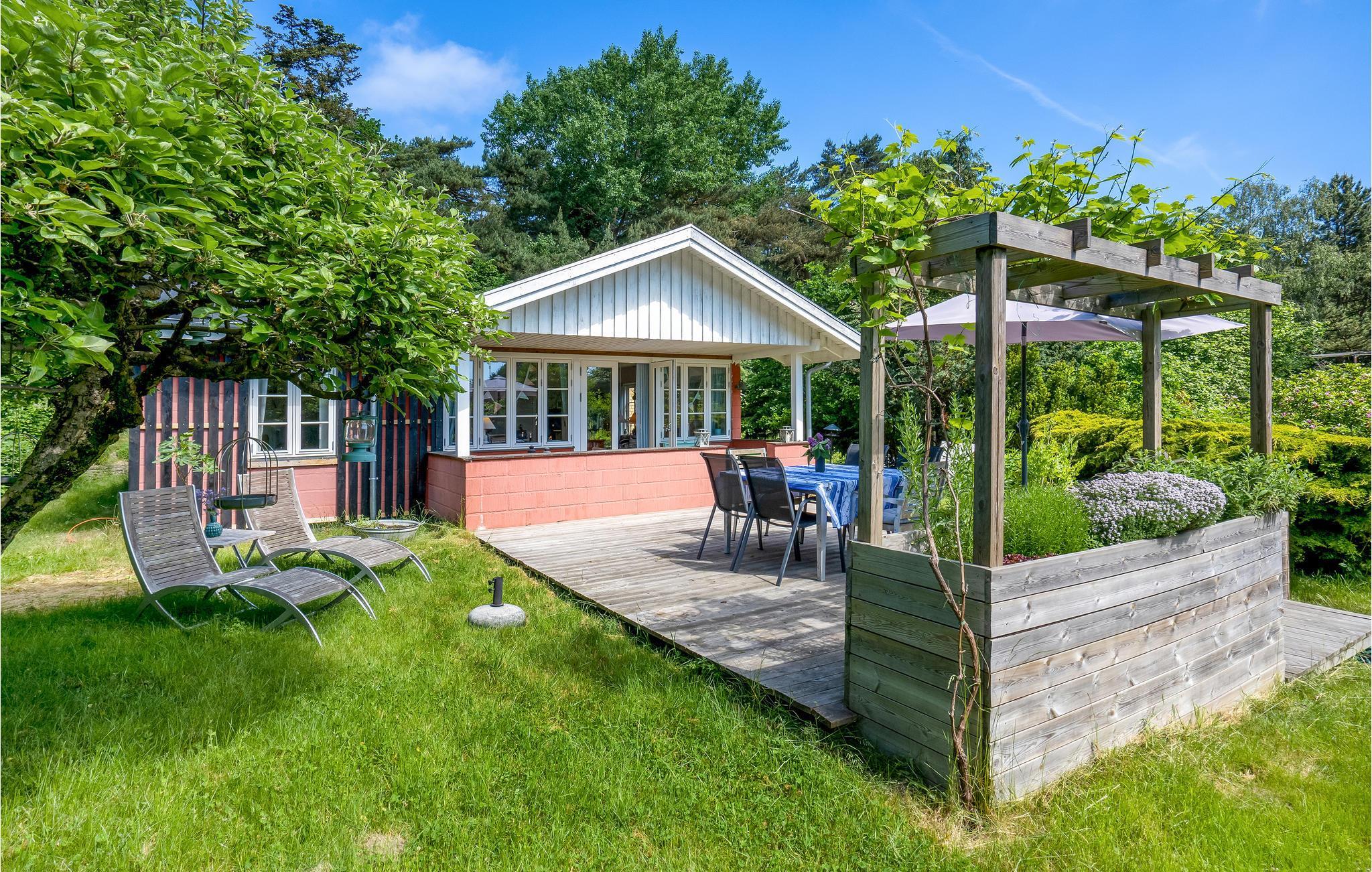 Charmerende sommerhus nær Bognæs med hyggelige terrasser, have og kun 500 m til vandet.