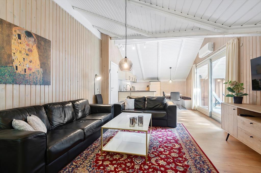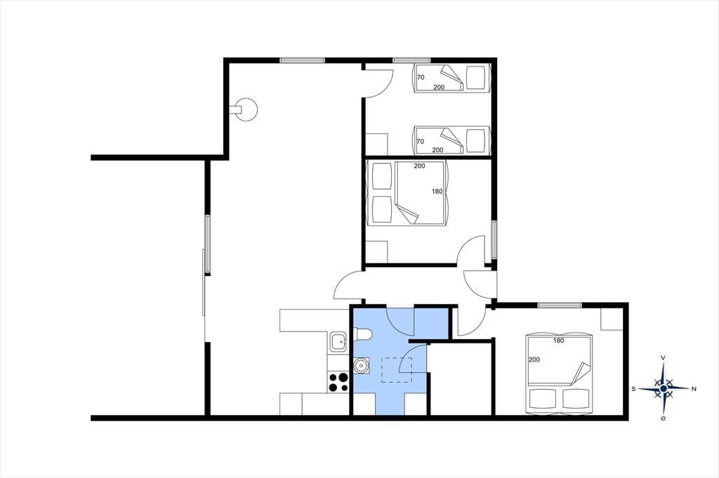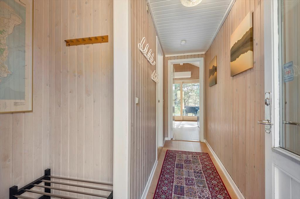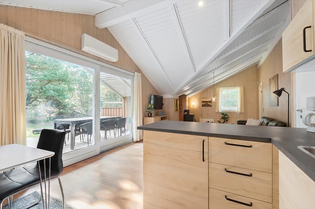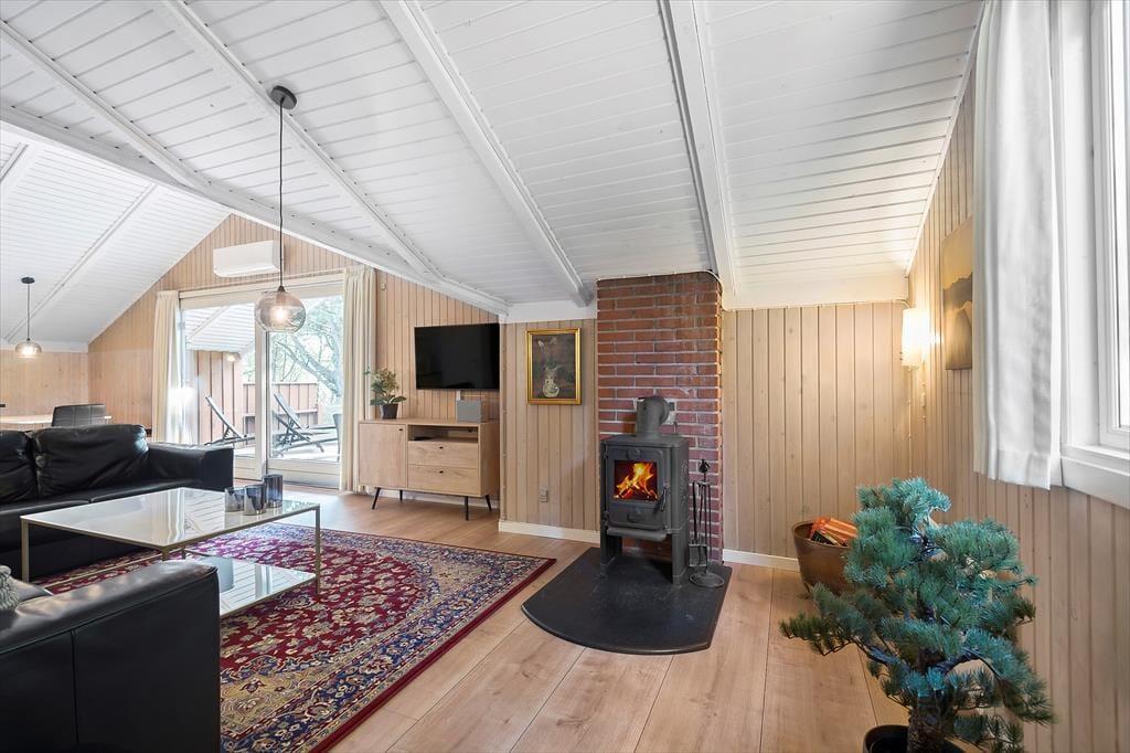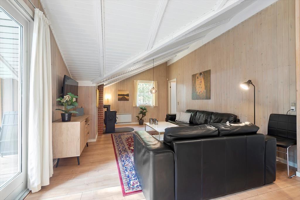 Der er tale om en pæn og velholdt feriebolig, som byder på 81 velindrettede kvadratmeter og en fornuftig planløsning, så huset kan nemt rumme seks personer. Atmosfæren er rar og indbydende i alle rum og ikke mindst i stuen, hvor brændeovnen kan skrue op for både varmen og hyggestemningen. I stuen er der god plads til at slænge sig i sofaafdelingen og samles til brætspil og snacks omkring spisebordet, og i den åbne køkkenafdeling kan I sagtens stå flere kokke, hvis I vil være fælles om madlavningen. To soveværelser er indrettet med dobbeltseng og det tredje med to enkeltsenge, og derudover består planløsningen af et badeværelse med tilstødende sauna.