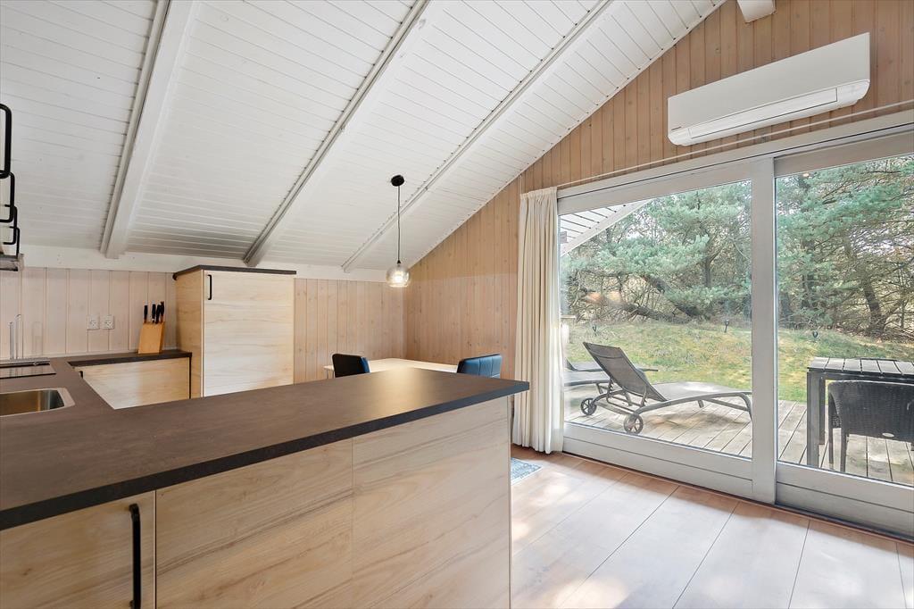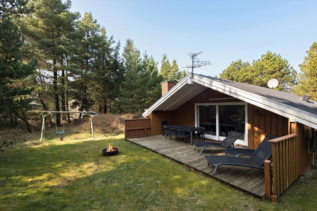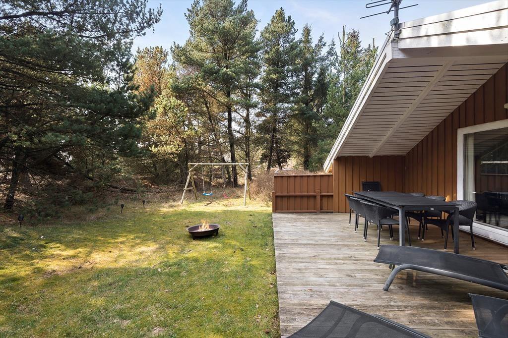 På lune sommerdage er det fristende at blive varmet igennem af solen frem for at tage en tur i saunaen. I så fald kan I slå jer ned i de komfortable havemøbler på den store, sydvendte træterrasse. Bliver det for varmt, kan I rykke ind under overdækningen, eller også kan I prøve at finde en god opholdsplads i skyggen fra træerne, der omkranser naturgrunden. Er der små børn med på ferien, bliver gyngerne sikkert et hit, og grillen kan tages i brug, når det er ved at være aftensmadstid.