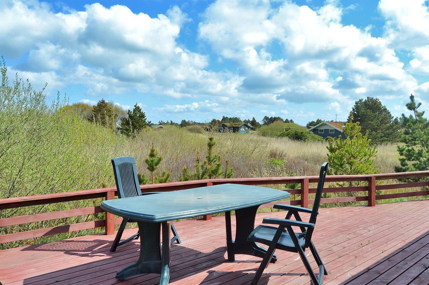Ferieboligen er beliggende på en 2500 m² stor naturgrund. Der er 2500 m til havet. Nærmeste forretning er beliggende i en afstand af 4300 m. Til ferieboligen hører 125 m² terrasseareal. Desuden er der 6 m² overdækket terrasse. Heraf i alt 131 m² lukket terrasse. Sandkasse. Der er installeret stik til opladning af elbil. Type 2 stik. Med 11 kW ladeeffekt. Parkering ved ferieboligen.