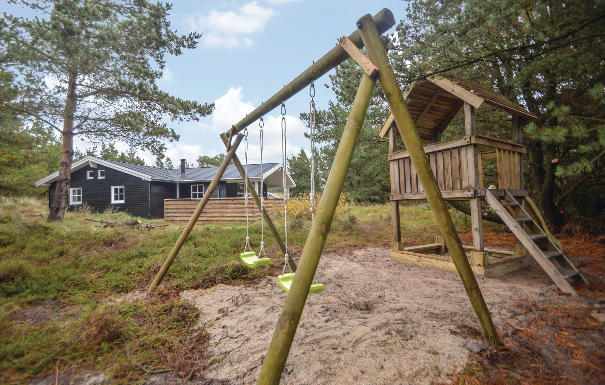 Fra stuen er der udgang til terrassen med havemøbler og grill, hvor I kan opholde jer fra tidligt til sent på de lange varme sommerdage. Den store kuperede naturgrund er et oplagt sted for gemmelege, og legetårnet bliver garanteret også flittigt brugt. 200 m fra feriehuset findes et stort stisystem.