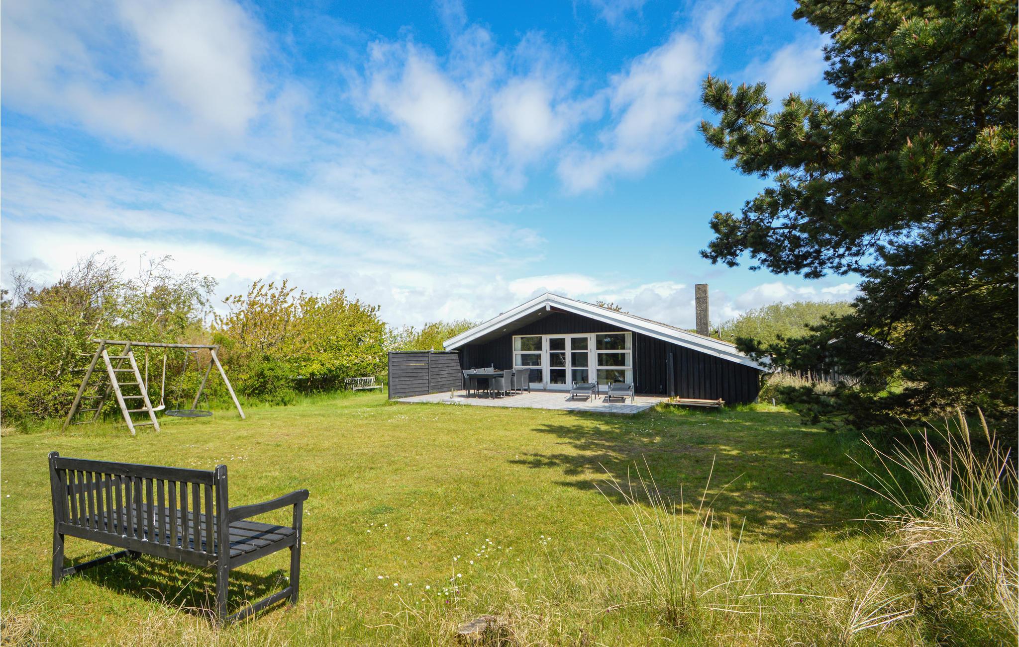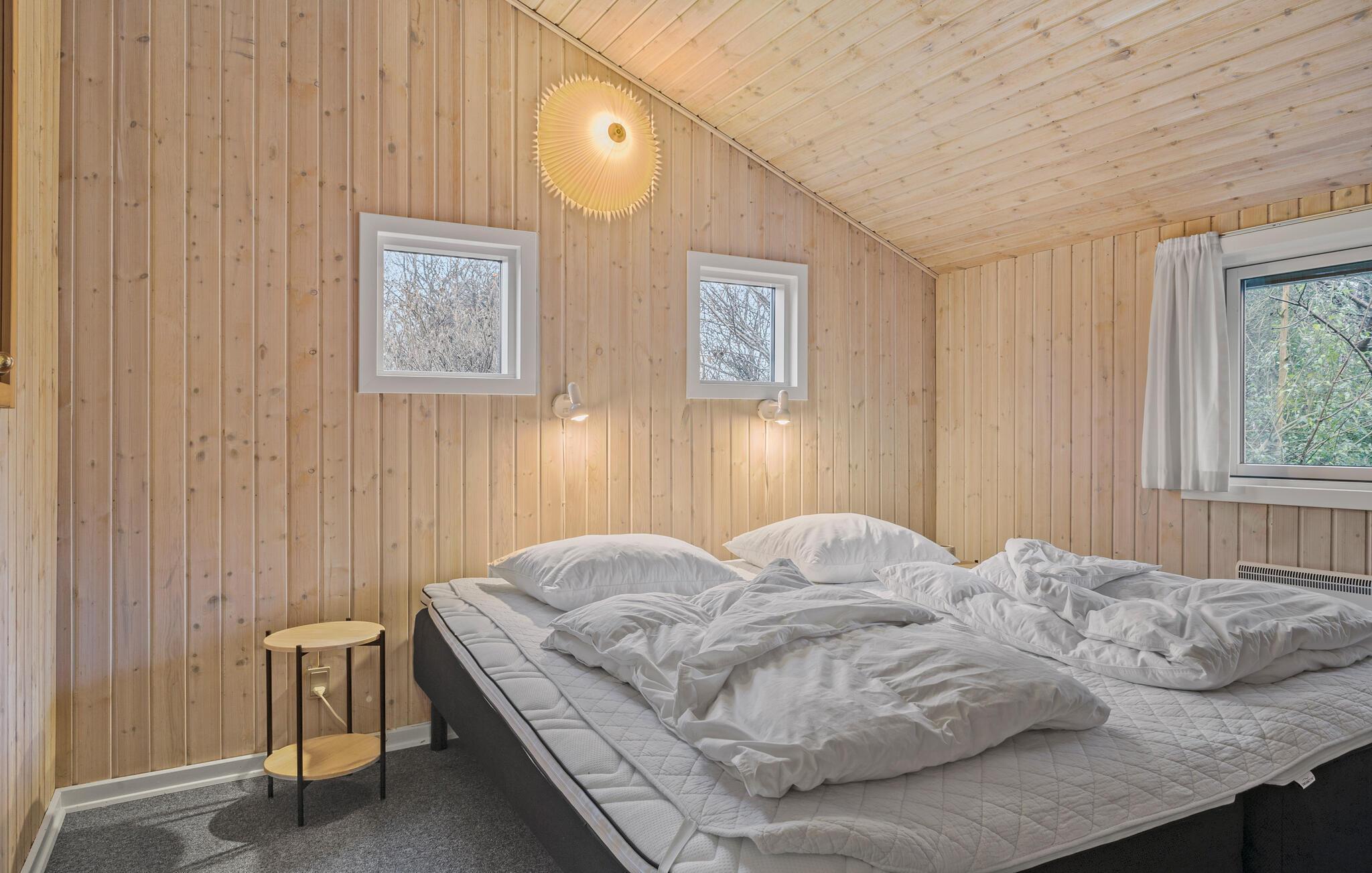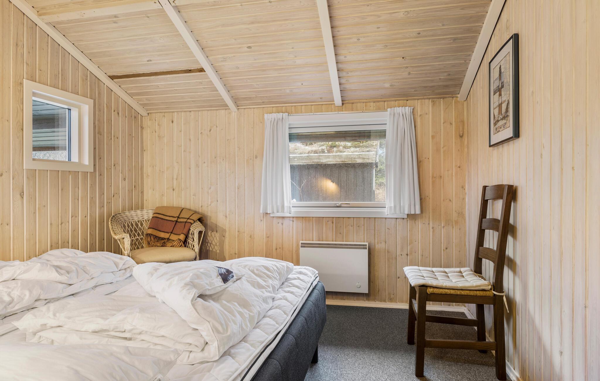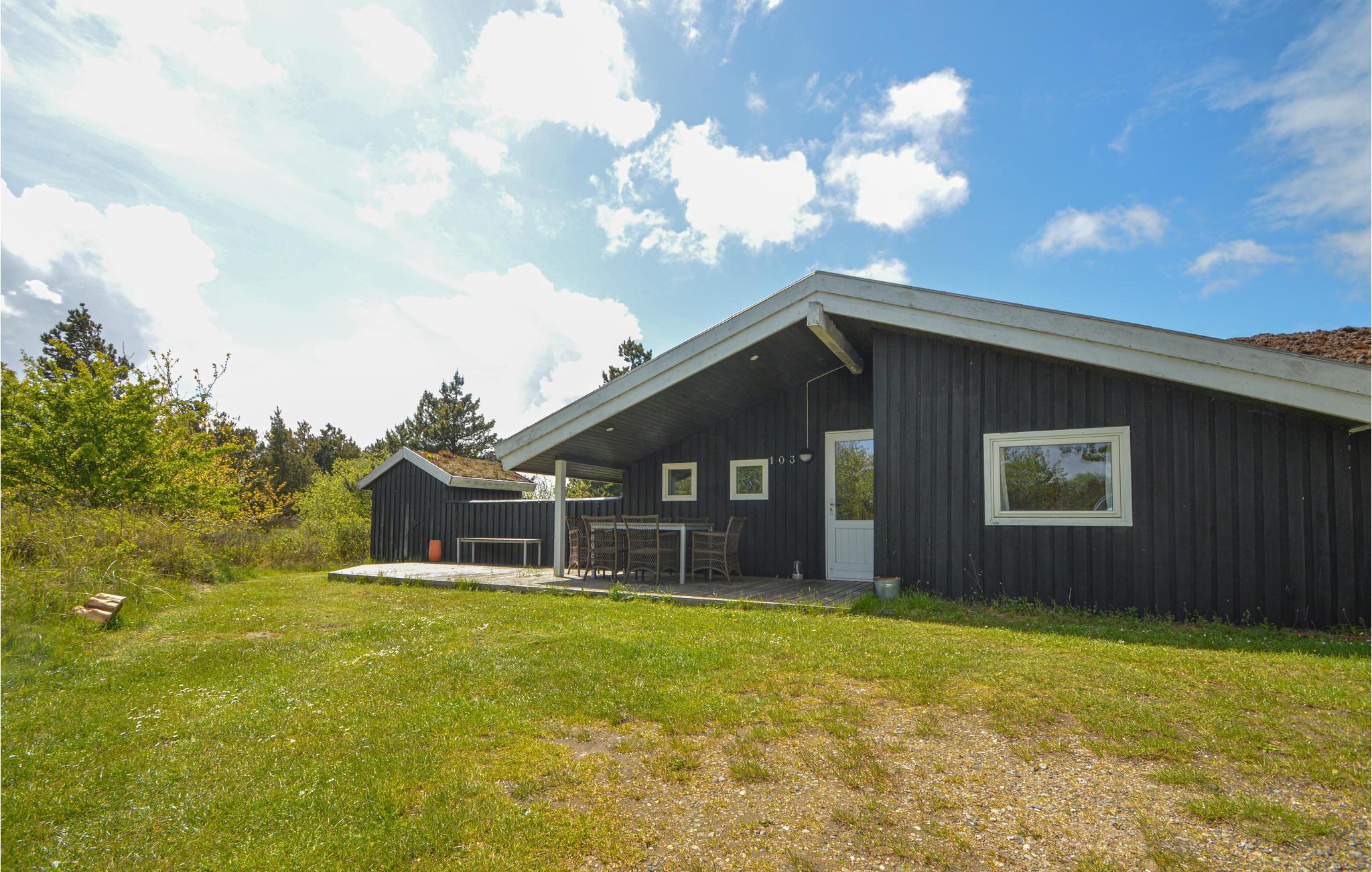 På en flot, kuperet naturgrund ligger dette rummelige træsommerhus. I huset er der en praktisk og veludstyret køkkenafdeling, der ligger i åben forbindelse med den lyse, kombinerede opholds-/spisestue. Stuen er udstyret med moderne møbler samt en hyggespredende brændeovn. Fra den hyggelige stue er der udgang til en skøn, ugenert vestvendt terrasse. Husene i Bolilmark har græstørv på taget, så de falder pænt i med områdets flotte natur - i gåafstand fra huset fører en cykelsti til Lakolk og Nordeuropas bredeste sandstrand.