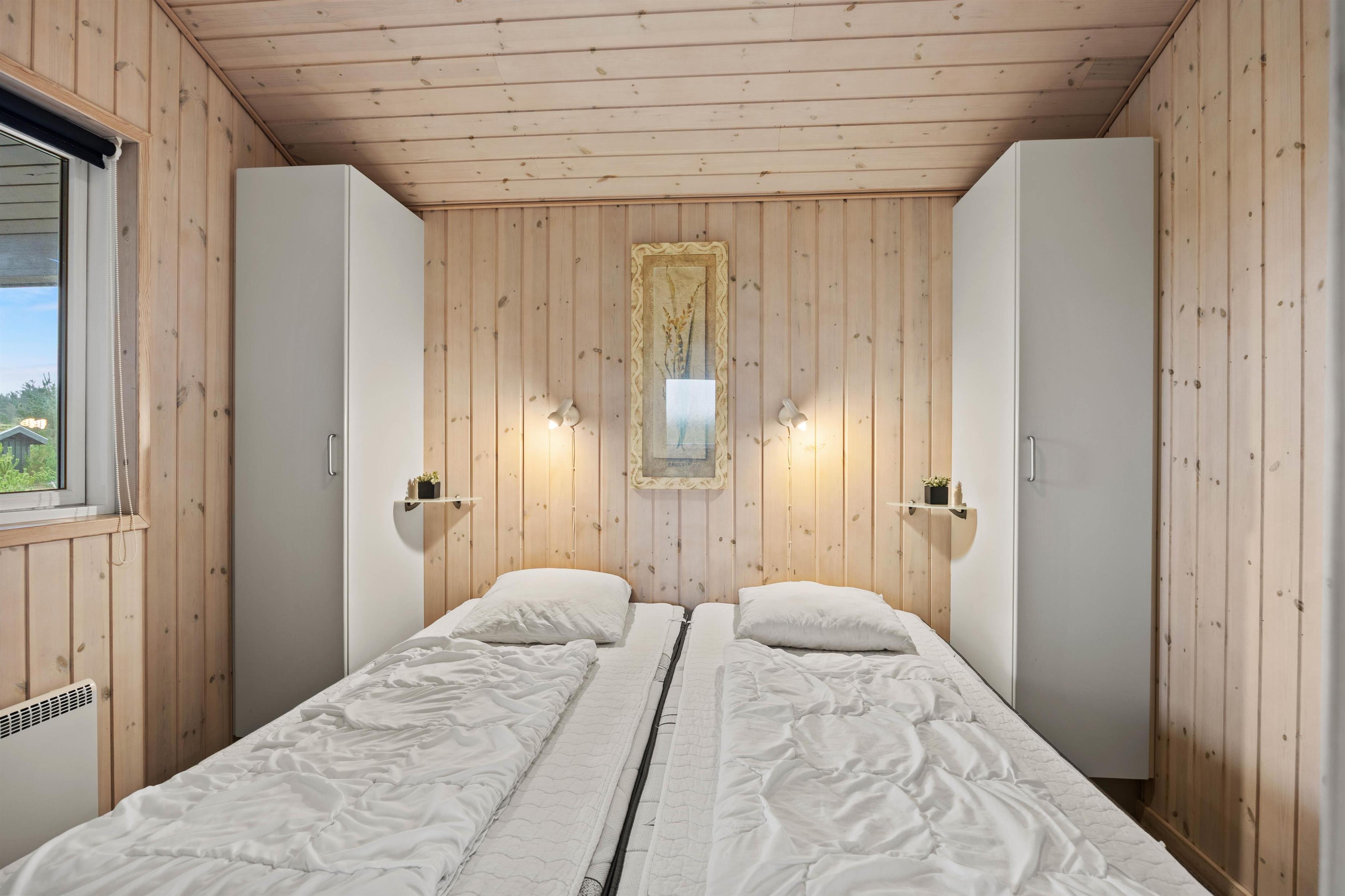 Med 3 hyggelige soveværelser, der inkluderer en dobbeltseng og tre enkeltsenge, er der rum til både afslapning og en god nattesøvn. Desuden er sommerhuset udstyret med en moderne luft til luft varmepumpe, som sikrer et behageligt klima året rundt.