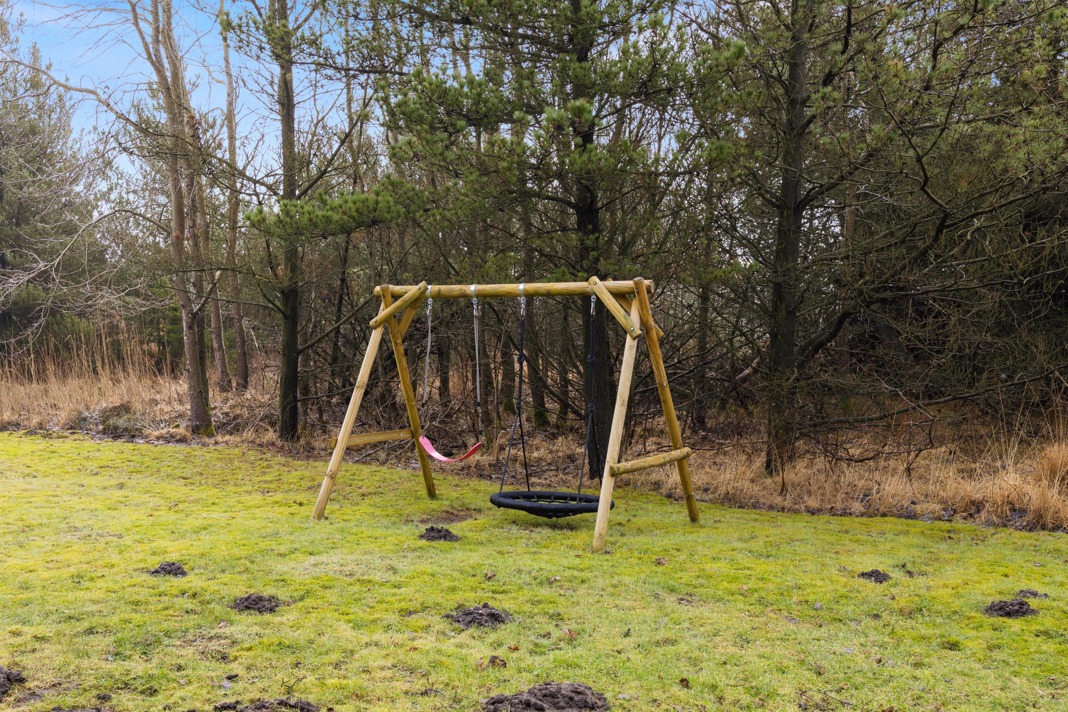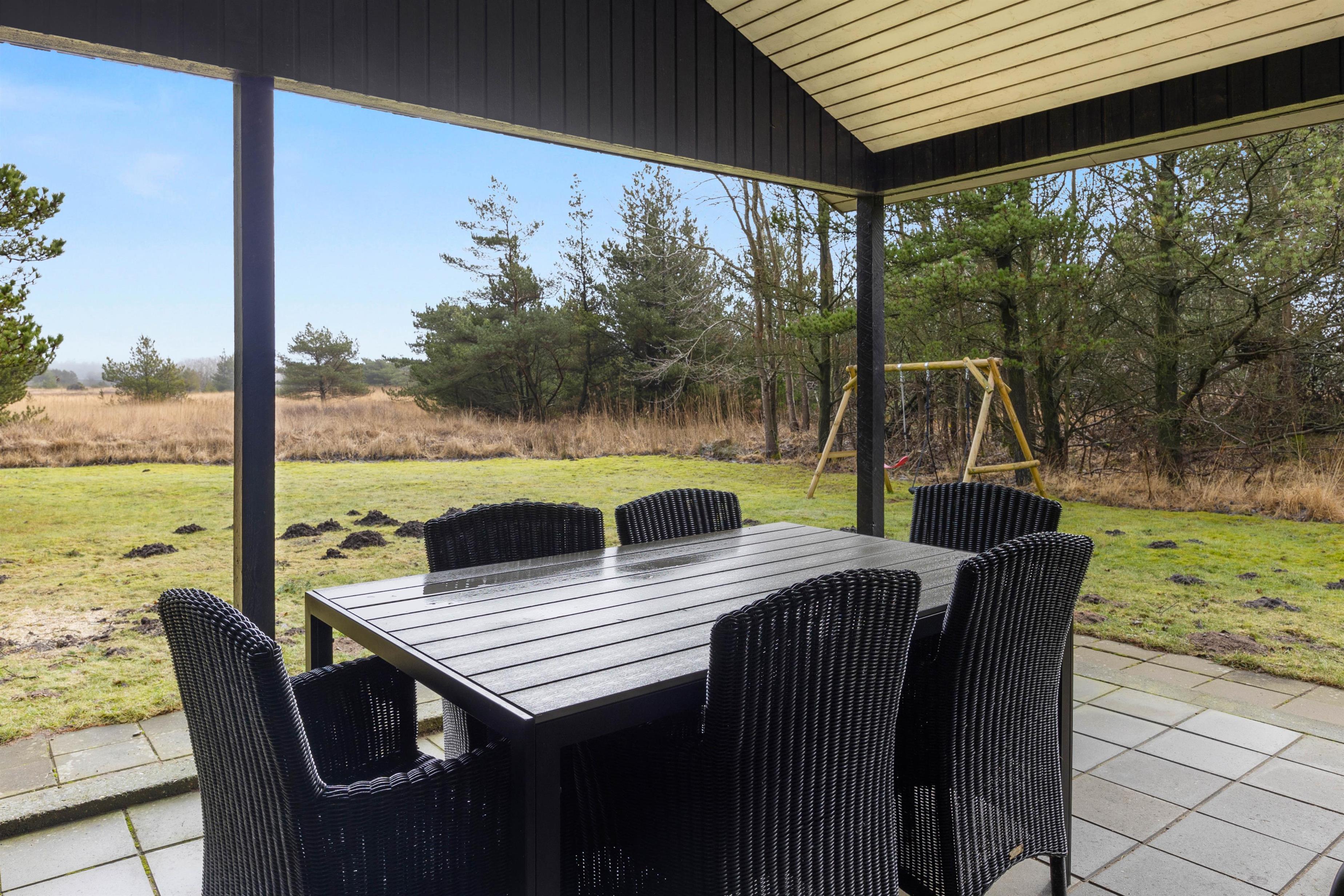 Med en stor grund på 2.505 m² er der masser af plads til leg og afslapning i det fri. Børnene kan more sig med gynge og sandkasse, mens de voksne nyder en grillmiddag på den overdækkede terrasse med havemøbler. Grunden er en skøn natur- og plænegrund, hvor du kan finde ro efter en tur til Vesterhavet eller en indkøbstur – kun 1.8 km væk.
