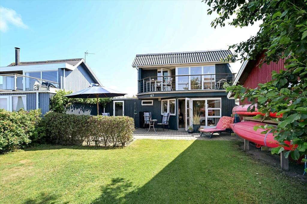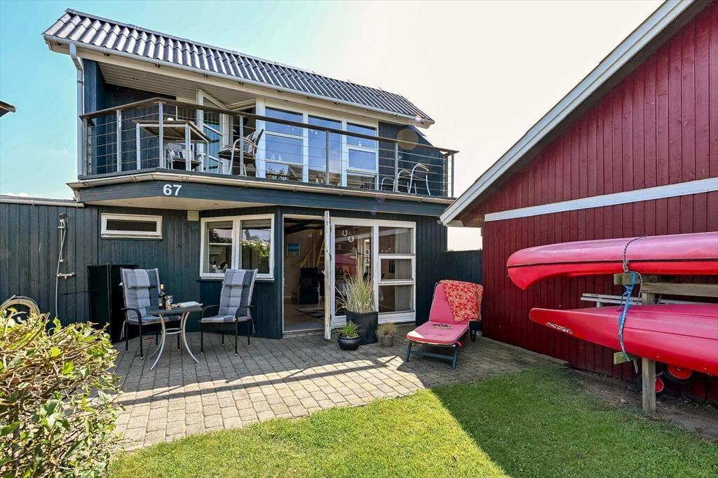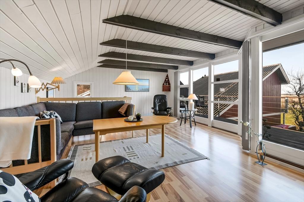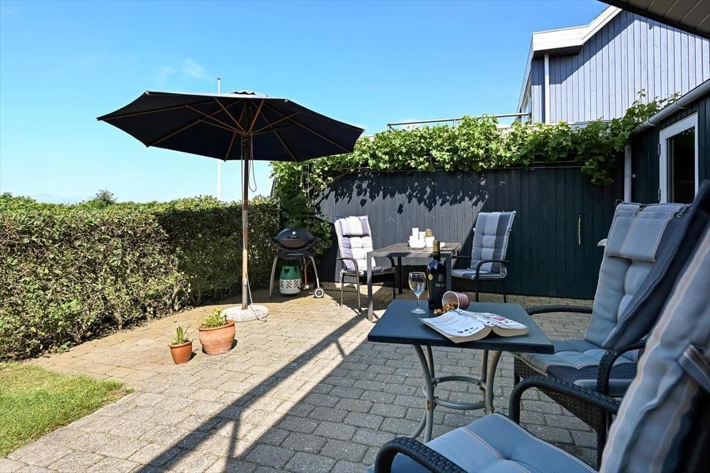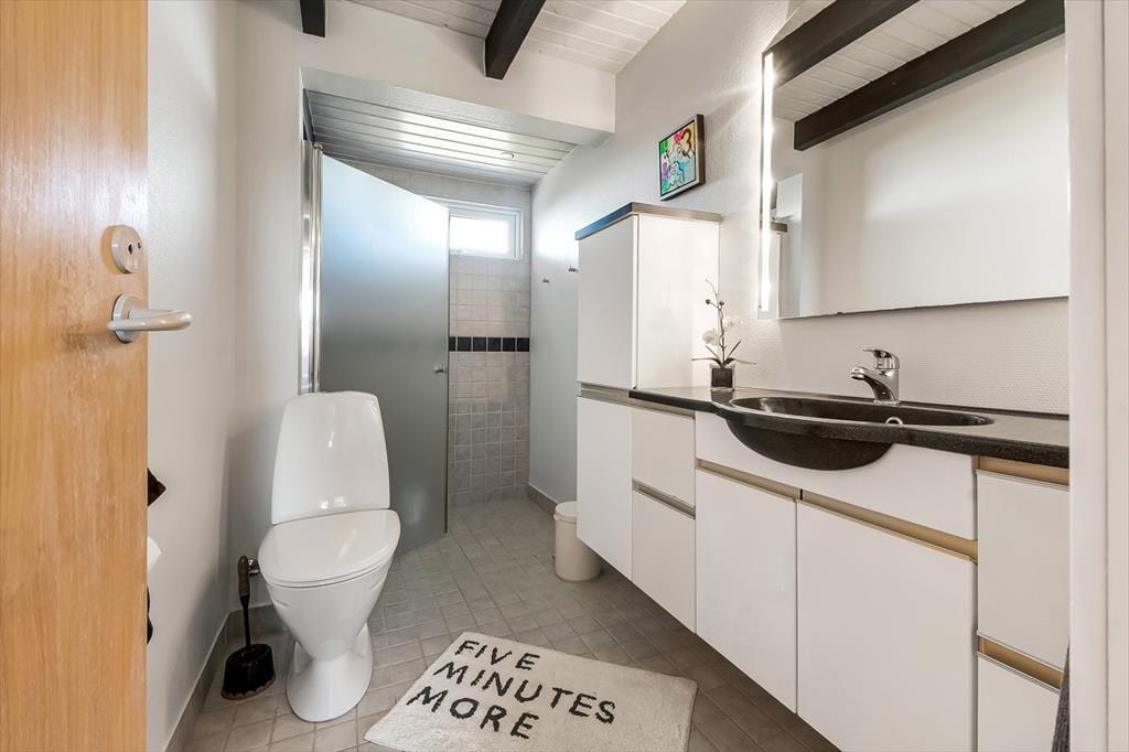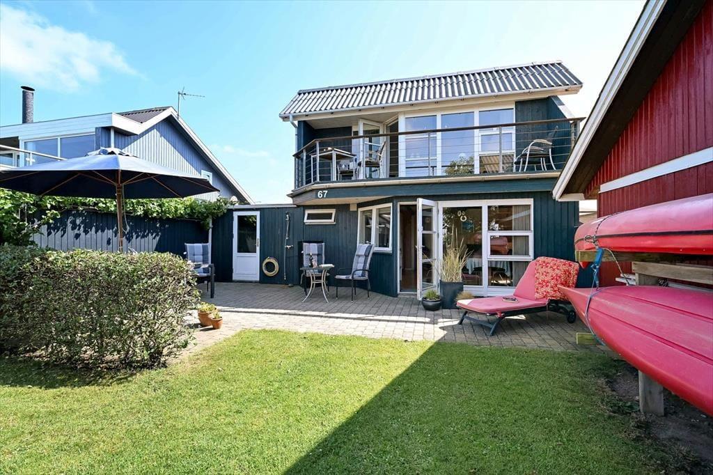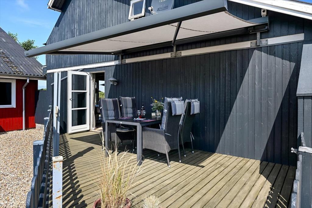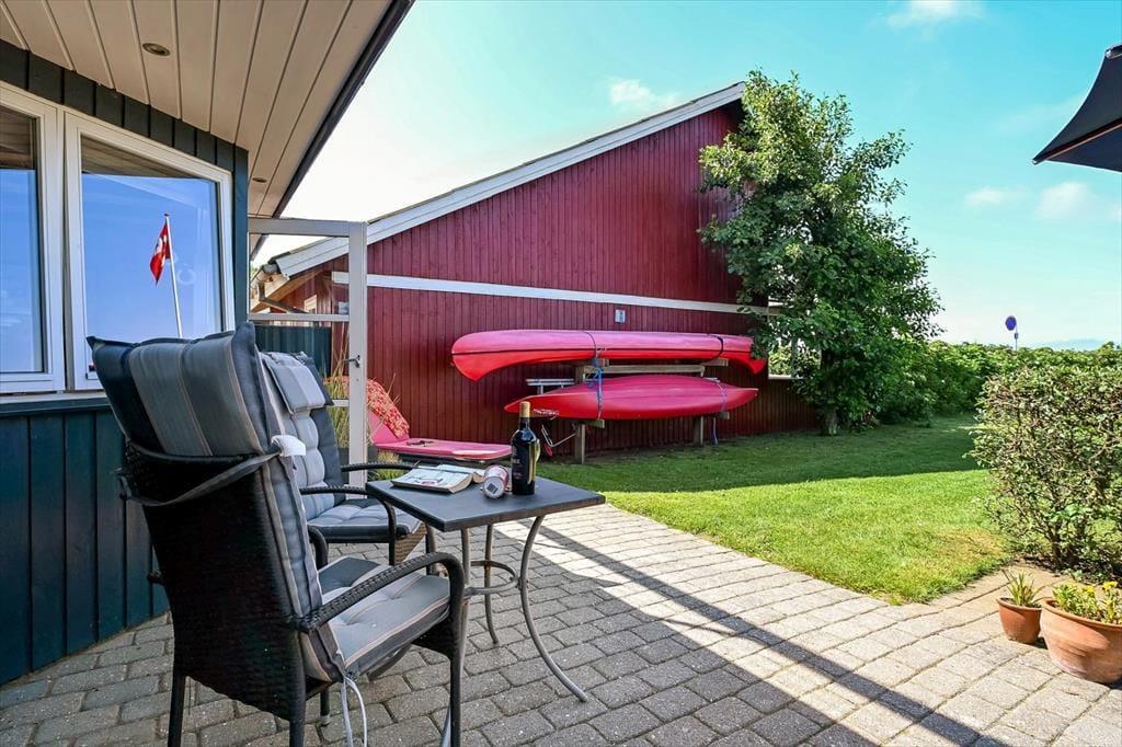 Den flotte fjordudsigt kommer virkelig til sin ret, når I sidder og nyder livet på førstesalens vestvendte altan. Skal alle solskinstimerne ikke tilbringes her, kan I slå jer ned på terrasserne, som ligger både øst og vest for sommerhuset. Den ene terrasse er udstyret med en markise, hvis I trænger til skygge på en varm sommerdag, og ellers kan I læne jer tilbage i solen i de komfortable havemøbler og liggestole. Som en praktisk detalje er der en udendørs bruser med varmt vand, så I nemt kan skylle fjordvandet af jer, når I kommer hjem fra surfturen.
