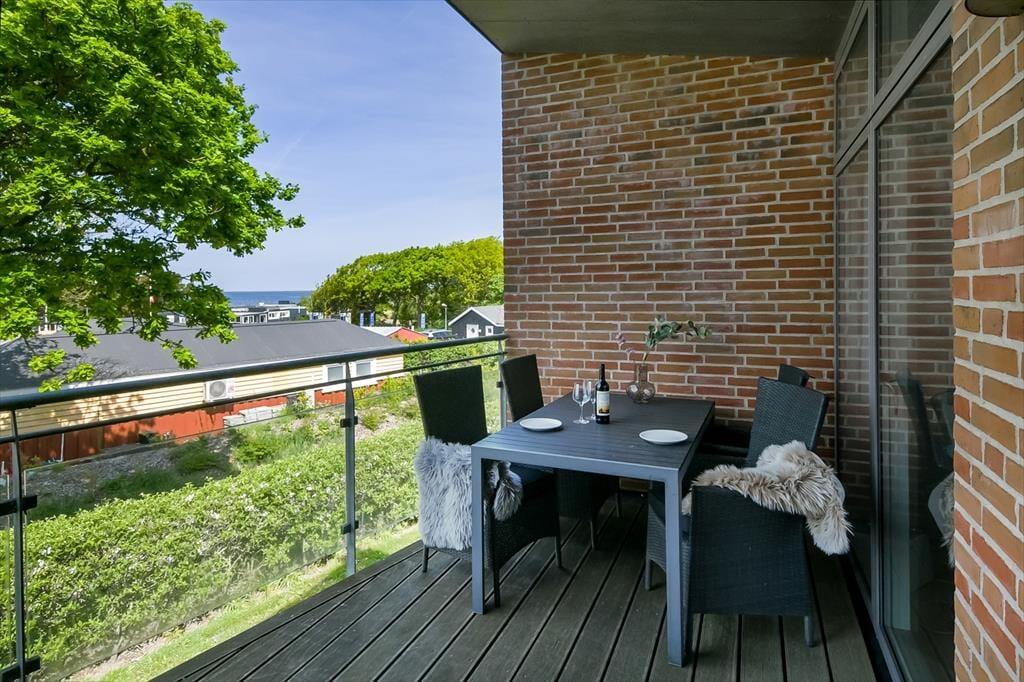 Fra førstesalens stue kan I træde direkte ud på en stor overdækket altan. Her kan I sidde og følge med i livet på og i havnen, mens I nyder det gode vejr og den afslappende feriestemning. Vil I hellere sidde i jordhøjde til en forandring, kan I rykke ned på lejlighedens to terrasser, der ligger henholdsvis mod vest og øst og derfor er solrige på forskellige tider af dagen.