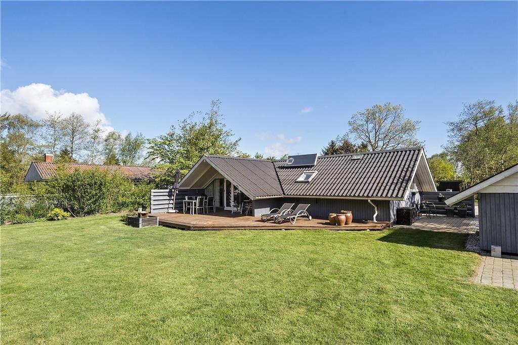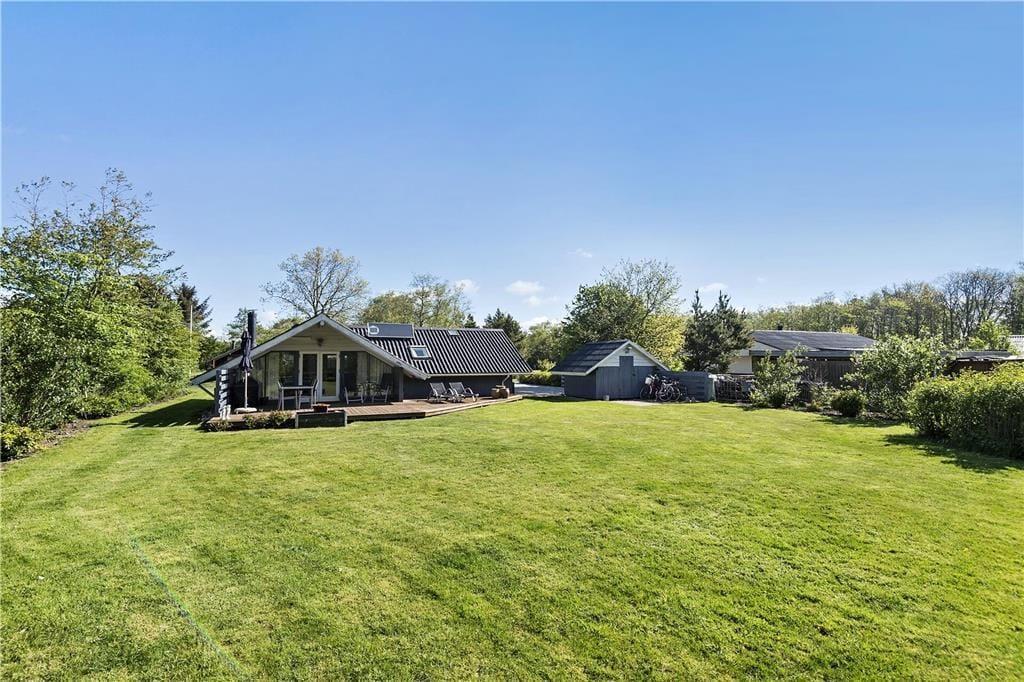 Både børn og voksne kan glæde sig til at opholde sig i haven: Her er der en stor græsplæne, hvor I kan spille havespil, og i et ugeneret hjørne kan I samles for at tænde bål og lave snobrød. De yngste kan også gynge, og uanset alder er det rart at tage en timeout i en liggestol på den store, sydvendte terrasse.